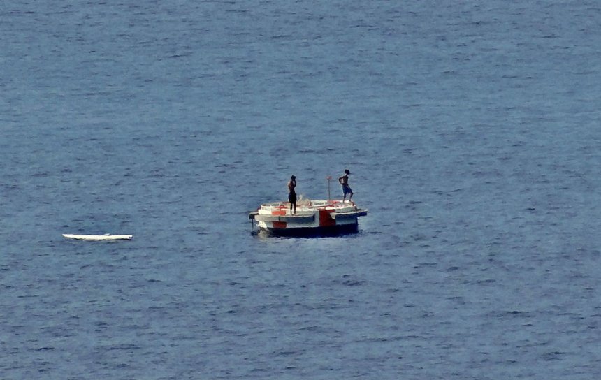 «Αφού ακόμα δεν δένουν κρουαζιερόπλοια...», σκέφτηκαν γεμάτοι ευρηματικότητα οι νεαροί κολυμβητές, «άσε να την κάνουμε προσωρινό βατήρα για... θεαματικές βουτιές».