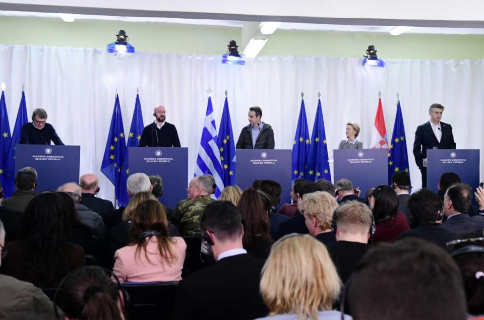 Η πρόεδρος της Κομισιόν, Ούρσουλα φον ντερ Λάιεν ανακοίνωσε οικονομική βοήθεια ύψους 700 εκατ. ευρώ για την Ελλάδα, με το 50% αυτής να είναι άμεσα διαθέσιμο, ενώ πρόσθεσε ότι θα υπάρξει συνδρομή της Frontex με προσωπικό και υλικοτεχνική υποδομή ως προς τη φύλαξη των συνόρων. Την ίδια στιγμή, ο πρόεδρος του Ευρωκοινοβουλίου, Νταβίντ Σασόλι επισήμανε ότι η ΕΕ έχει καθυστερήσει ως προς την αναθεώρηση του Κανονισμού του Δουβλίνου και γι’ αυτό το λόγο πρέπει ν’ αναζητήσει μια νέα, ενιαία στρατηγική για το μεταναστευτικό. Και οι δύο όπως και ο πρόεδρος του Ευρωπαϊκού Συμβουλίου, Σαρλ Μισέλ και ο προεδρεύων της ΕΕ και πρωθυπουργός της Κροατίας, Μάριο Πλένκοβιτς σημείωσαν ότι η Ελλάδα είναι τα εξωτερικά σύνορα της ΕΕ και γι’ αυτόν ακριβώς το λόγο πρέπει η κατάσταση ν’ αντιμετωπιστεί αναλόγως, με τον κ. Σασόλι να θέτει και το ζήτημα των ασυνόδευτων ανηλίκων.