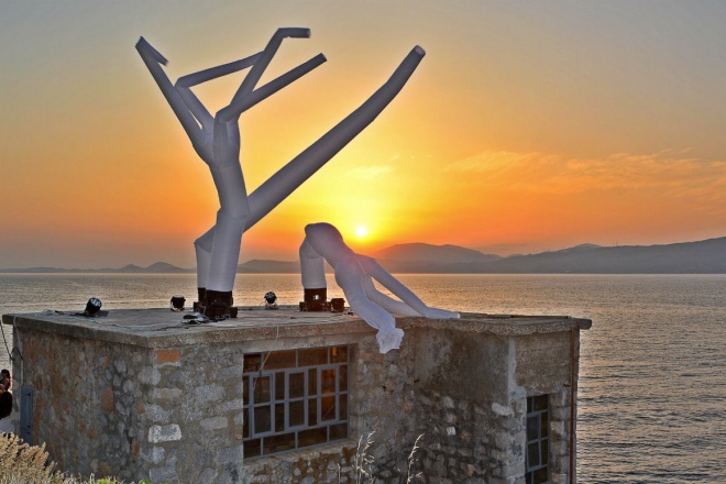 Κάθε καλοκαίρι εδώ και 7 χρόνια το τζετ σετ της τέχνης «αγκυροβολεί» στο απομονωμένο κτήριο των Σφαγείων της Ύδρας και απολαμβάνει πρωτότυπα πρότζεκτ με διεθνές εκτόπισμα. Εκατοντάδες άνθρωποι του καλλιτεχνικού χώρου ταξίδεψαν και φέτος αμέτρητα χιλιόμετρα για να βρεθούν στα εγκαίνια της έκθεσης του Paul Chan, Hippias Minor (Ιππίας Ελάσσων) που οργανώθηκε με τη φροντίδα του Ιδρύματος ΔΕΣΤΕ και του Επιχειρηματία και Συλλέκτη Δάκη Ιωάννου.