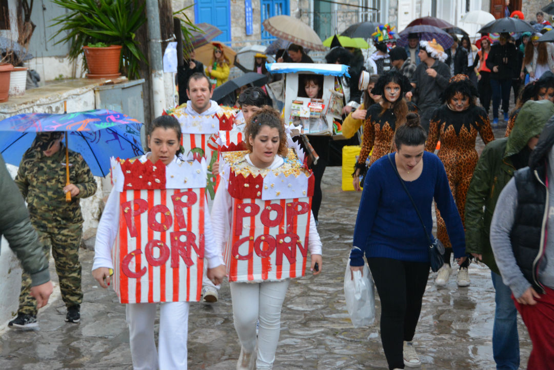 Τίποτα δεν ήταν αρκετό για να πτοήσει το φετινό καρναβάλι της Ύδρας! Η νεροποντή που ξεκίνησε από τα πρώτα "βήματα" του καρναβαλιού δε στάθηκε εμπόδιο για τους χαρούμενους καρναβαλιστές που συνέχισαν την περιοδεία τους από τα στενά σοκάκια του νησιού μας, κάνοντας στάσεις γλεντιού. Και με πορεία προς τη συνήθη διαδρομή, μέχρι και την παραλία, όπου στήθηκε ξέφρενος χορός, συνοδευόμενος από ένα υπέροχο γαϊτανάκι. Τι κι αν η βροχή συνέχισε να πέφτει σαν άφθονος "χαρτοπόλεμος" πάνω στις πολύχρωμες ομπρέλες. Το καρναβάλι γεμάτο ευφάνταστες στολές, ιδιαίτερες μεταμφιέσεις, θεματικά group, γελαστά πρόσωπα και ντυσίματα με υπονοούμενα ήταν συνέχεια ενεργό. Ο Καρνάβαλος με τον γαμπρό και τη νύφη, και όλους τους μασκαράδες χάρισαν διασκέδαση, χρωματίζοντας τη διάθεση μικρών και μεγάλων. Μετά το καρναβάλι έφτασε στην Ξερή Ελιά όπου τα τραπέζια περίμεναν τον κόσμο γεμάτα κρασί και πολλά εδέσματα, ενώ πάνω από αυτά υπήρχαν τέντες για προφύλαξη από τη συνεχή βροχή. Εκεί μετά το καλωσόρισμα του Δημάρχου Γιώργου Κουκουδάκη και τις ευχές του, ξεκίνησε ένα πολύωρο γλέντι, όπου ο Γιάννης Κονιτόπουλος ξεσήκωσε όλους τους παρευρισκόμενους με τα νησιώτικα τραγούδια του και το υπέροχο ρεπερτόριό του. Και του χρόνου ευχόμαστε και πολλά συγχαρητήρια στην επιτροπή καρναβαλιού και τον Δήμο, αλλά και σε όσους πρόθυμα και αυθόρμητα πρόσφεραν χρώμα, ενθουσιασμό και πολύ κέφι!