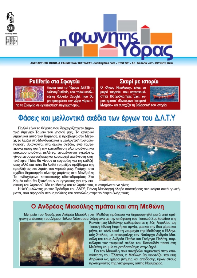 Κυκλοφόρησε το τεύχος Ιουνίου της «Φωνής της Ύδρας» με πλούσια ενημερωτική ύλη, άρθρα, σχολιασμούς και επισημάνσεις. Διαβάστε μεταξύ άλλων: