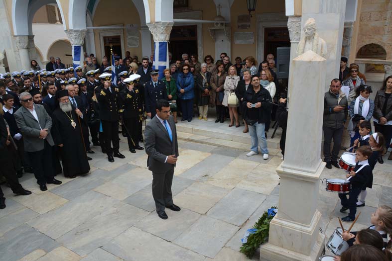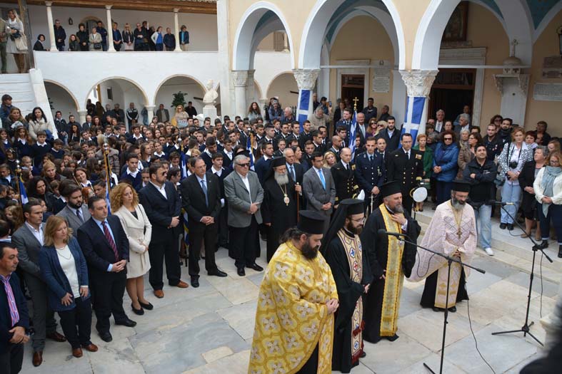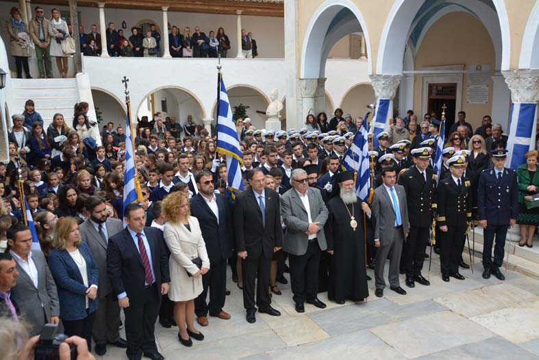 Σε κλίμα πατριωτικό και με κάθε επισημότητα πραγματοποιήθηκε το πρωί ο εορτασμός της 28ης Οκτωβρίου. Τελέστηκε η Δοξολογία στον Ιερό Καθεδρικό Ναό Κοιμήσεως της Θεοτόκου, χοροστατούντος του Μητροπολίτη Ύδρας, Σπετσών και Αιγίνης κ. Εφραίμ και του τοπικού ιερού κλήρου καθώς και επιμνημόσυνη δέηση.