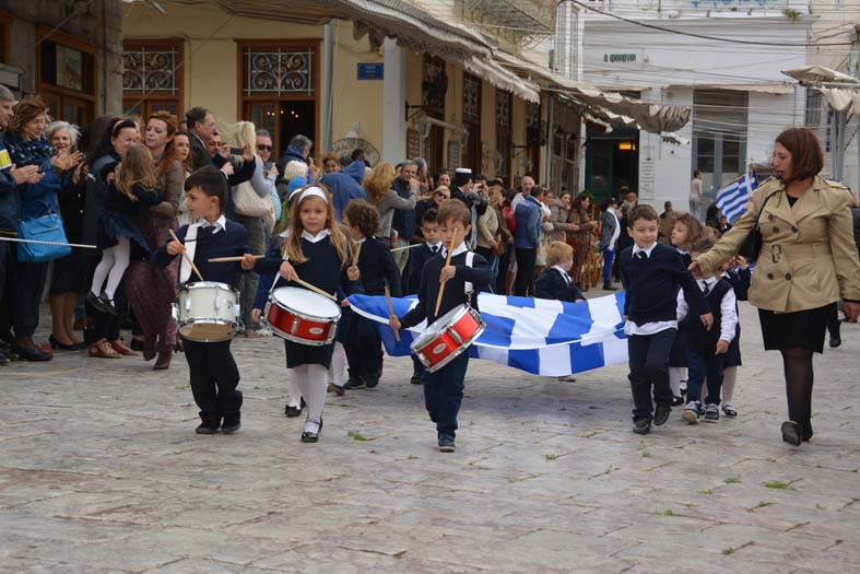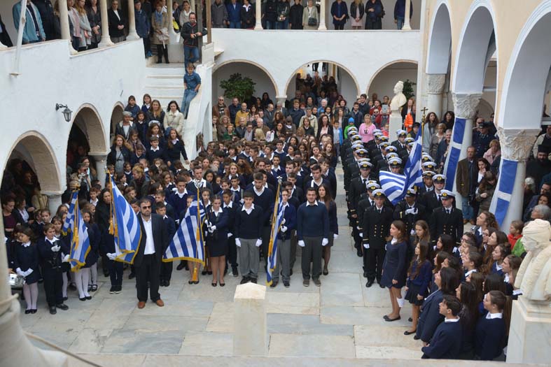 Με τη λήξη πλήθος κόσμου αποχώρησε από τον προαύλιο χώρο της Μητρόπολης και μεταφέρθηκε έξω στην παραλία όπου παρακολούθησε και χειροκρότησε με ενθουσιασμό την όμορφη παρέλαση των μαθητών των σχολείων και των σπουδαστών της ΑΕΝ. Να σημειώσουμε ότι Τελετάρχης της εκδήλωσης ήταν ο Δημήτρης Δάβης.
