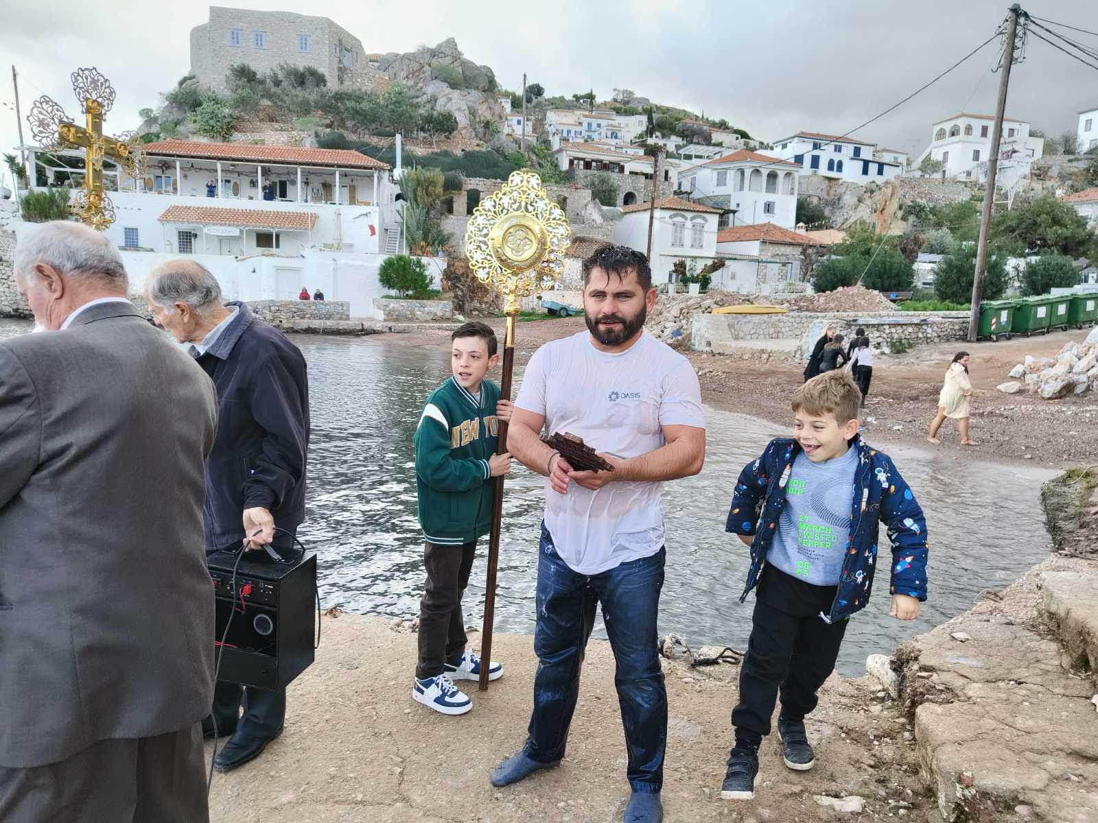 Tο σταυρό ανέσυρε από τη θάλασσα ο Νεκτάριος Αρμαδούρος.