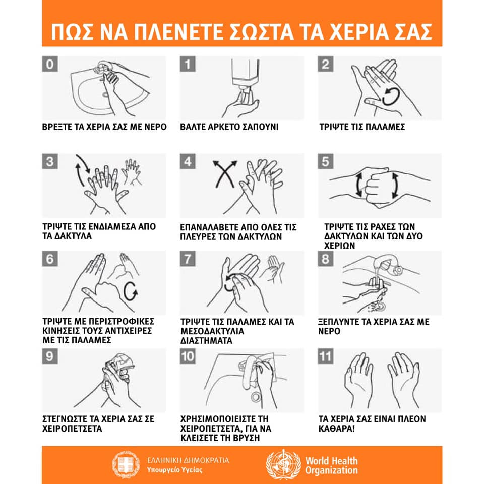 Δείτε στην ακόλουθη αφίσα του Υπουργείου Υγείας, τον ενδεδειγμένο τρόπο πλυσίματος χεριών για την προστασία μας από τον Κορωνοϊό!