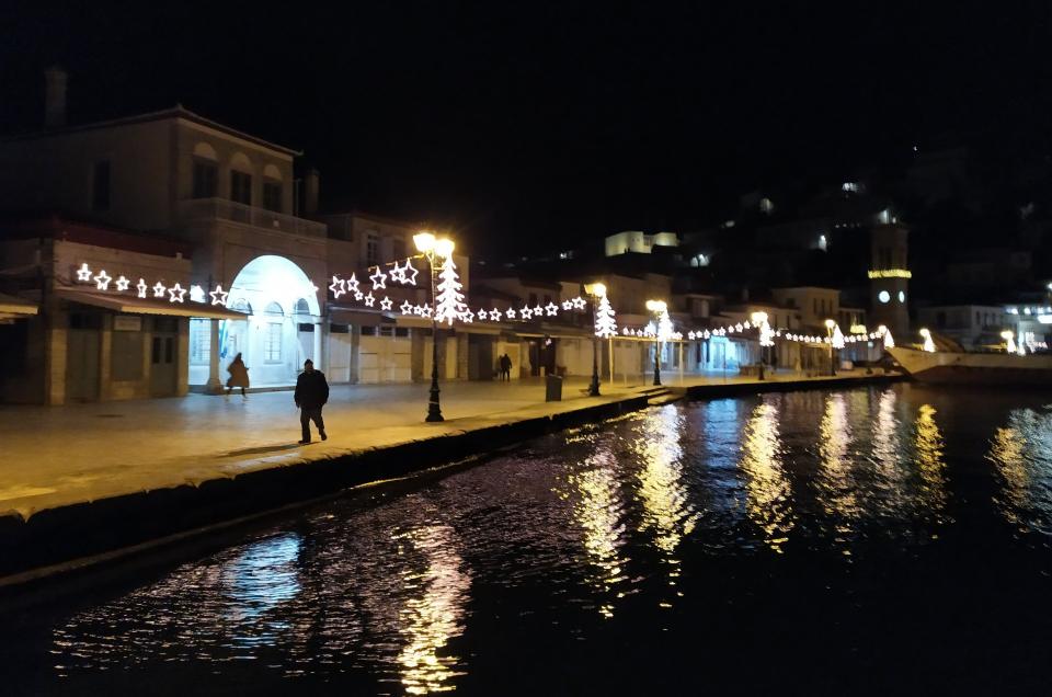 Άναψε τα φωτάκια της η Ύδρα και στολίστηκε με τον Άγιο Βασίλη της, το έλκηθρο και τους φωτεινούς αγγέλους της, δημιουργώντας μια ατμόσφαιρα Χριστουγεννιάτικη.