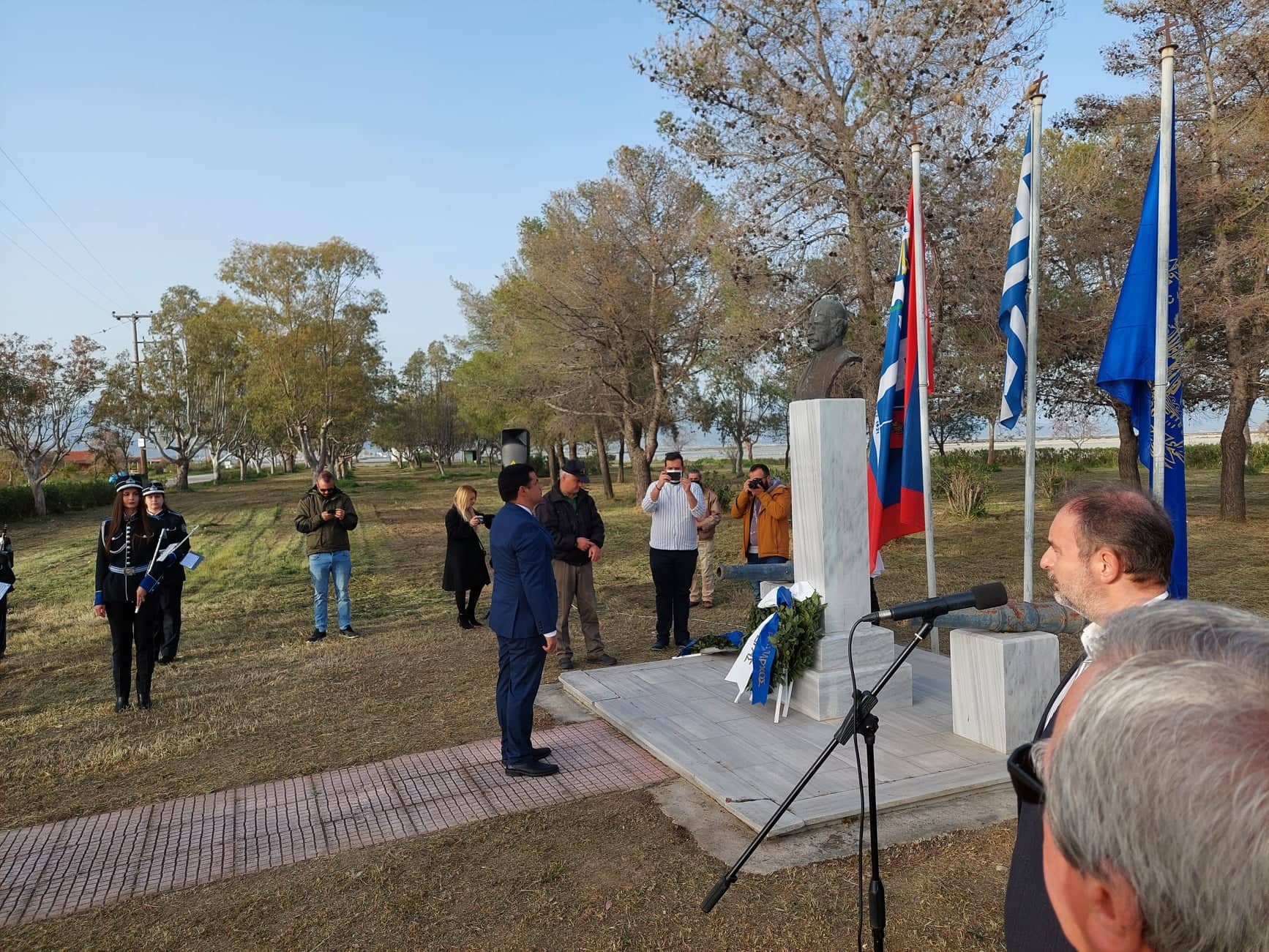 Της τελετής προηγήθηκε επιμνημόσυνη δέηση και κατάθεση στεφάνου στην Προτομή του Ναυάρχου.