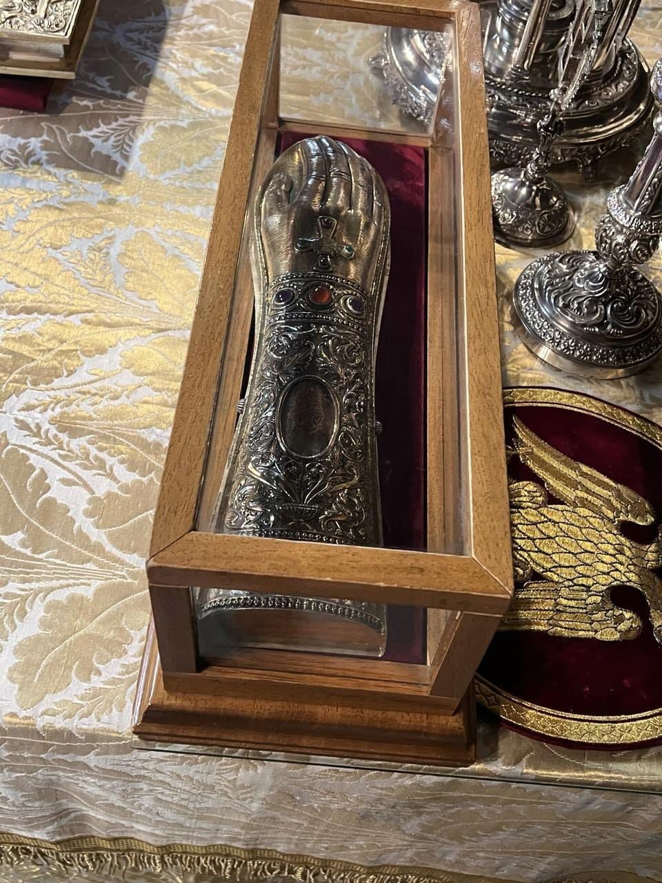 Προ της απολύσεως του Εσπερινού της Γονυκλισίας, ετέθη σε προσκύνημα η Τιμία Χείρα του Αγίου Νεκταρίου η οποία θα μεταφερθεί εις Λυγουριό- Αργολίδος.