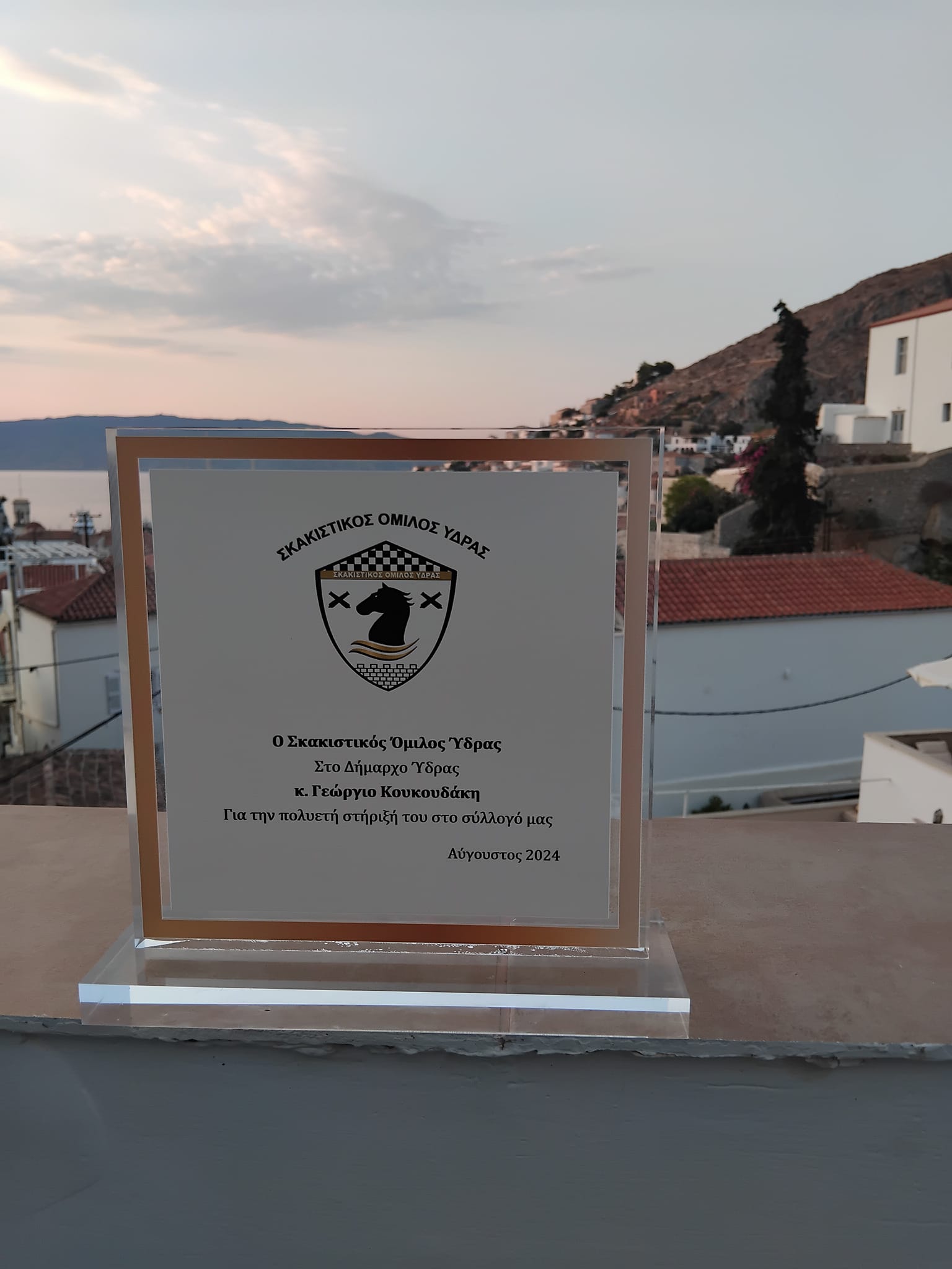 Τον Σκακιστικό Όμιλο Ύδρας για τα δέκα χρόνια προσφοράς και δράσης στο Νησί μας ευχαρίστησε το Σάββατο 4 Αυγούστου ο Δήμαρχος Ύδρας Γιώργος Κουκουδάκης.