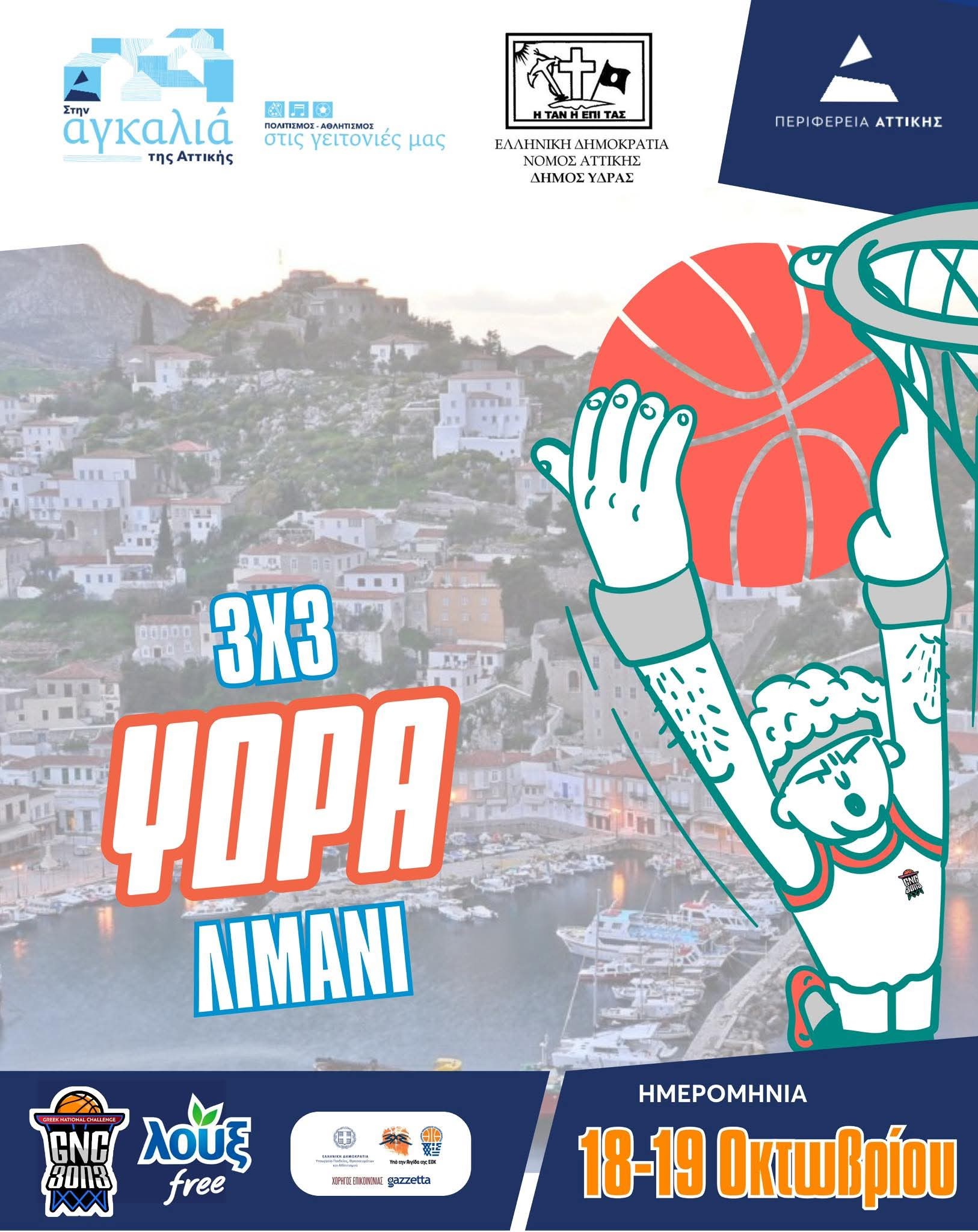 Ο Δήμος Ύδρας, σε συνδιοργάνωση με την Περιφέρεια Αττικής, ανακοινώνει με χαρά τη διεξαγωγή του LOUX GNC 3on3 | ΥΔΡΑ 2025, ενός μοναδικού τουρνουά μπάσκετ 3×3 που θα πραγματοποιηθεί ΔΩΡΕΑΝ στο εμβληματικό λιμάνι της Ύδρας, το Σαββατοκύριακο 18 και 19 Οκτωβρίου.