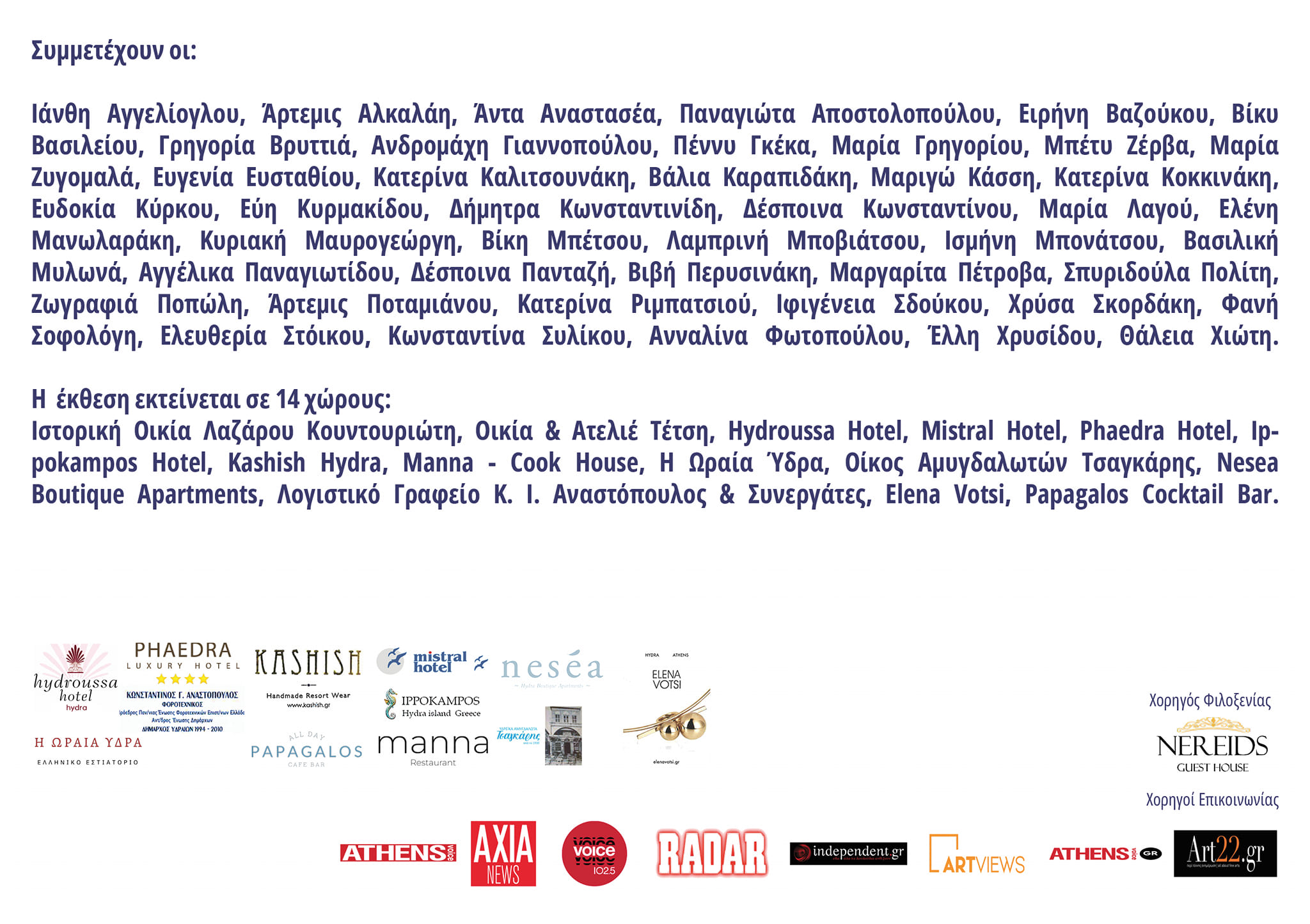 *Η έκθεση πραγματοποιείται με την Αιγίδα του Δήμου Ύδρας