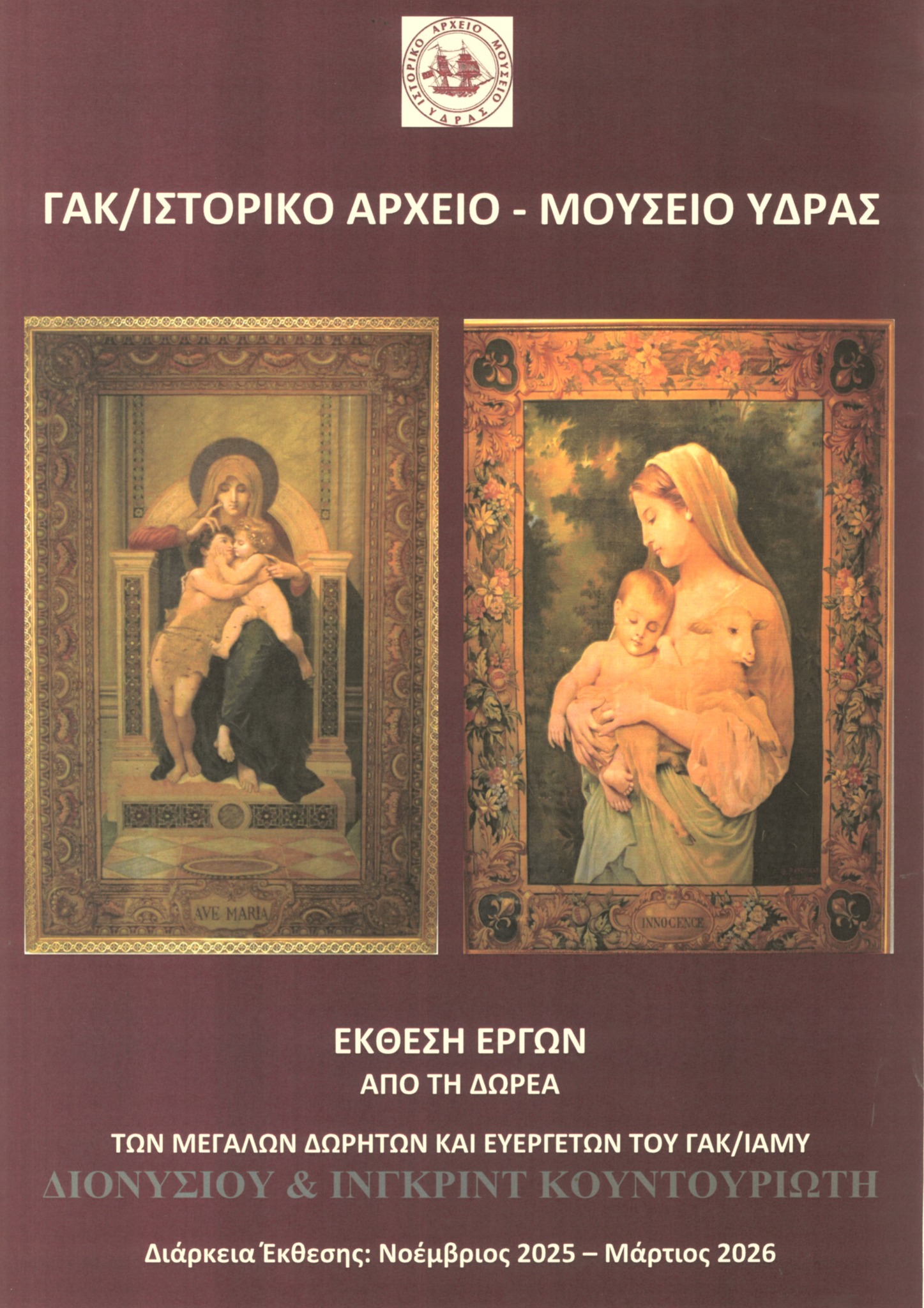 Πρόκειται για την Έκθεση έργων από τη μεγάλη δωρεά των δωρητών και ευεργετών του Ιστορικού Αρχείου Μουσείου Ύδρας, Διονυσίου και Ίνγκριντ Κουντουριώτη (Διάρκεια Νοέμβριος 2025- Μάρτιος 2026) και για την Έκθεση Ζωγραφικής με έργα σύγχρονης τέχνης από τη συλλογή του Μουσείου καθ' όλη τη χειμερινή περίοδο.