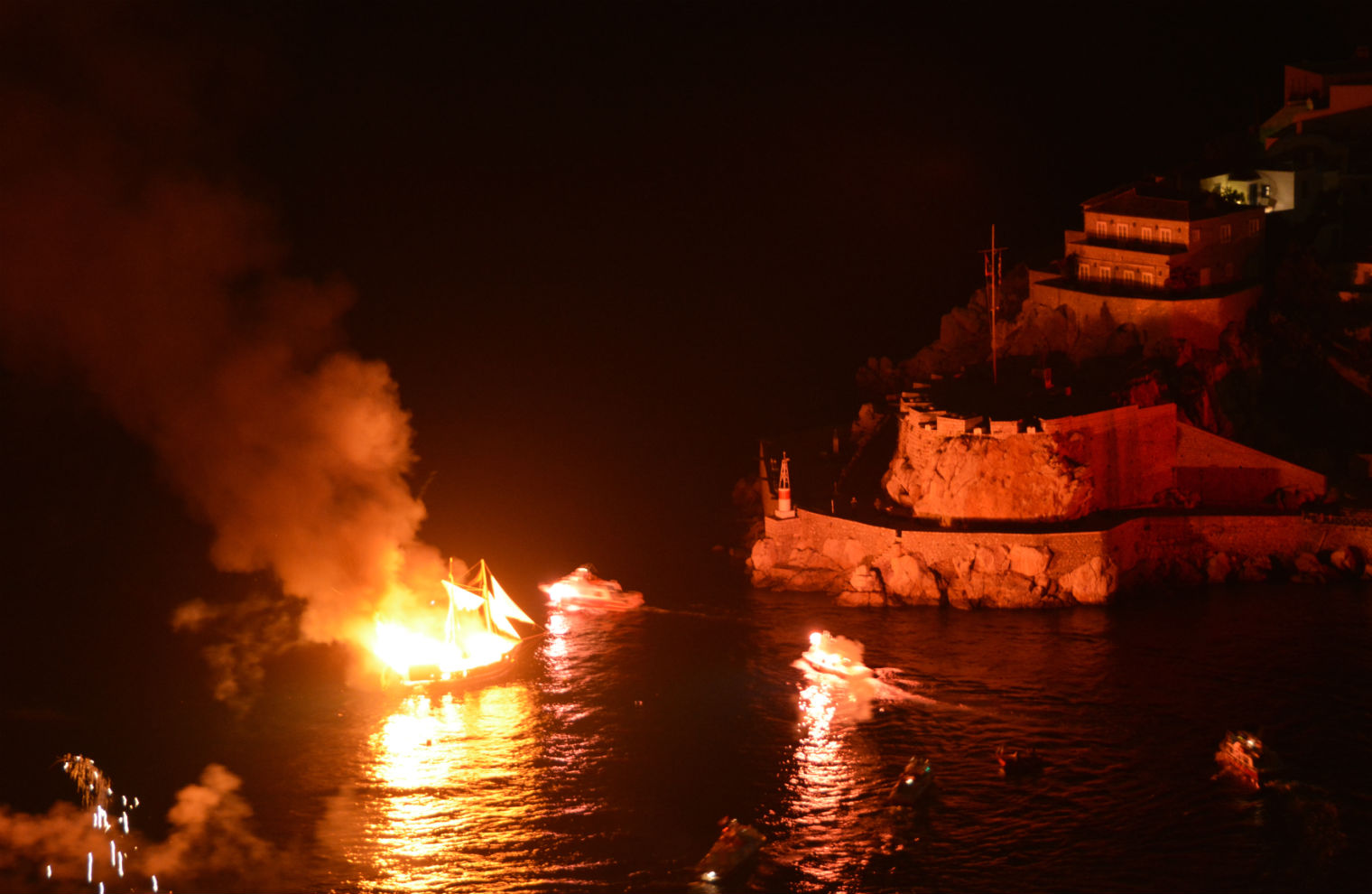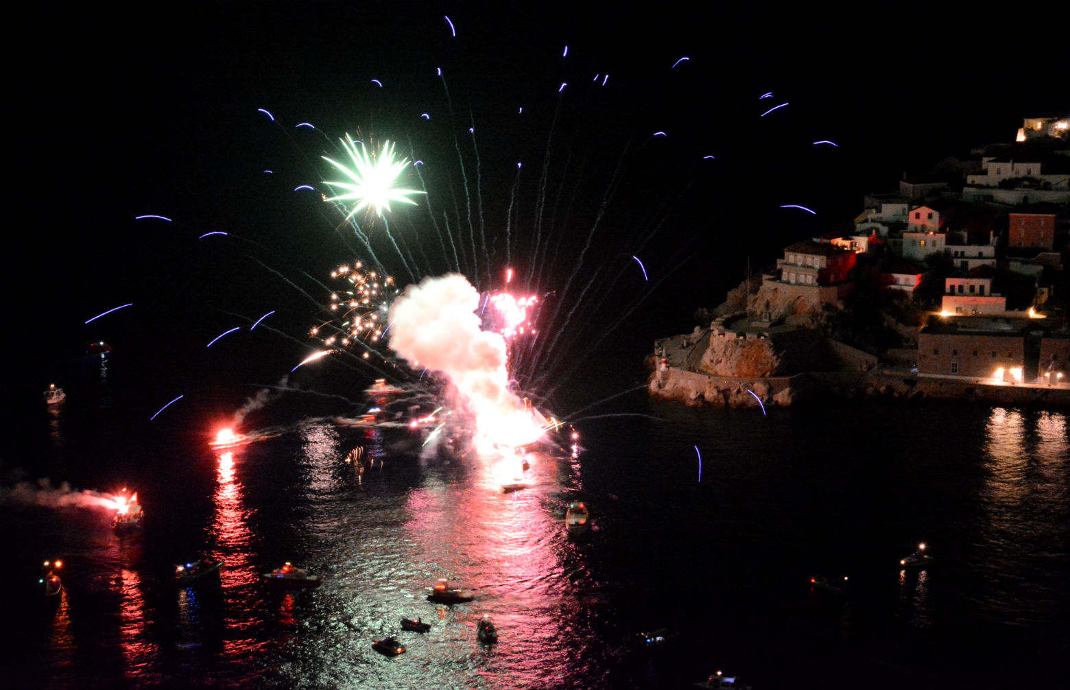 Στο πέταλο του νησιού ήταν διάσπαρτα χορευτικά του Υδραϊκού Ναυτικού Ομίλου και η χορωδία παιδιών του Δημοτικού και του Γυμνασίου του νησιού μας καθώς και χορός από τους μπουρλοτιέρηδες μαζί με τον Αντιπεριφερειάρχη και τον Δήμαρχο. Για να συνεχιστεί ο εορτασμός με τη συναυλία του Παντελή Θαλασσινού.