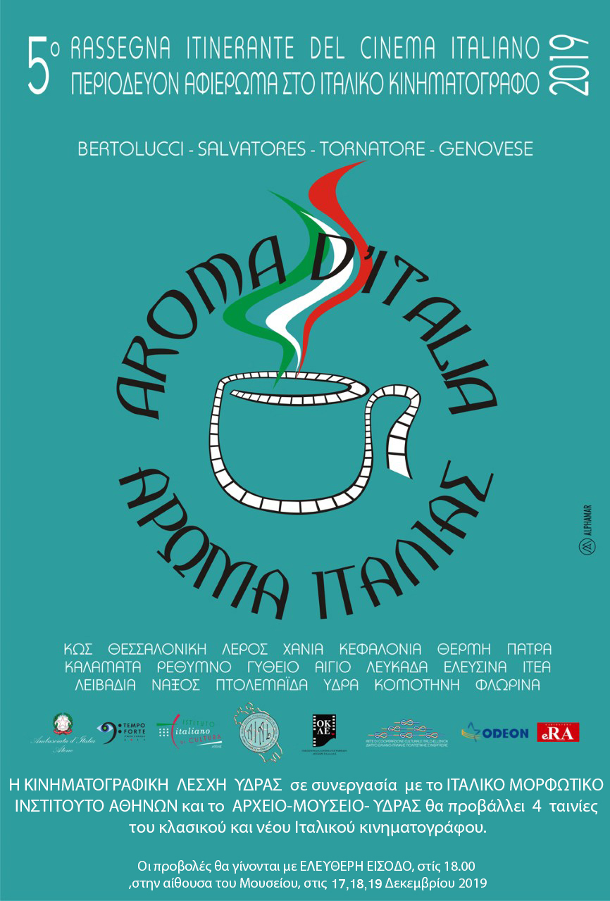 Η ΚΙΝΗΜΑΤΟΓΡΑΦΙΚΗ ΛΕΣΧΗ ΥΔΡΑΣ σε συνεργασία με το ΙΤΑΛΙΚΟ ΜΟΡΦΩΤΙΚΟ ΙΝΣΤΙΤΟΥΤΟ ΑΘΗΝΩΝ και το ΙΣΤΟΡΙΚΟ ΑΡΧΕΙΟ ΜΟΥΣΕΙΟ ΥΔΡΑΣ θα προβάλλει 4 ταινίες του κλασικού και νέου Ιταλικού κινηματογράφου.