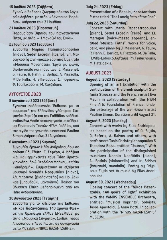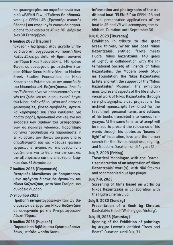 Πολιτιστικό Καλοκαίρι Ύδρας - Το Πρόγραμμα των εκδηλώσεων Ι.Α.Μ.Υ 2023 συγκεντρωτικά