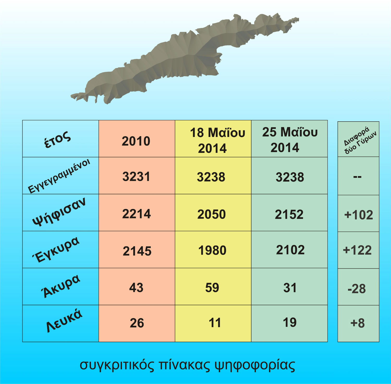 Συγκριτικοί πίνακες των δύο γύρων των δημοτικών εκλογών της 18ης Μαΐου και 25ης Μαΐου 2014. Γραφήματα: fonitisydras
