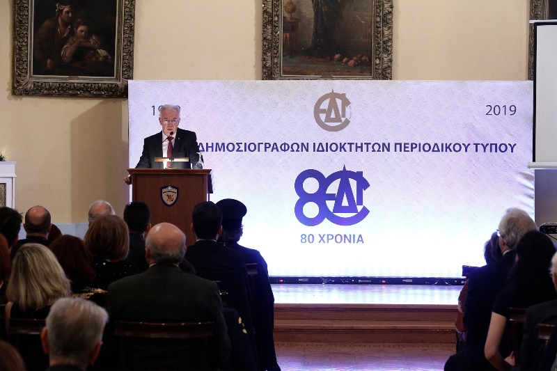 Με μεγάλη επιτυχία και με τη συμμετοχή περισσότερων από 250 μελών και φίλων της Ενώσεως πραγματοποιήθηκε η εκδήλωση για την επέτειο των 80 χρόνων της Ενώσεως Δημοσιογράφων Ιδιοκτήτων Περιοδικού Τύπου, τη Δευτέρα 9 Δεκεμβρίου 2019, στη αίθουσα τελετών της Λέσχης Αξιωματικών Ενόπλων Δυνάμεων (ΛΑΕΔ), υπό την αιγίδα της Α.Ε. του Προέδρου της Δημοκρατίας κυρίου Προκοπίου Παυλοπούλου.