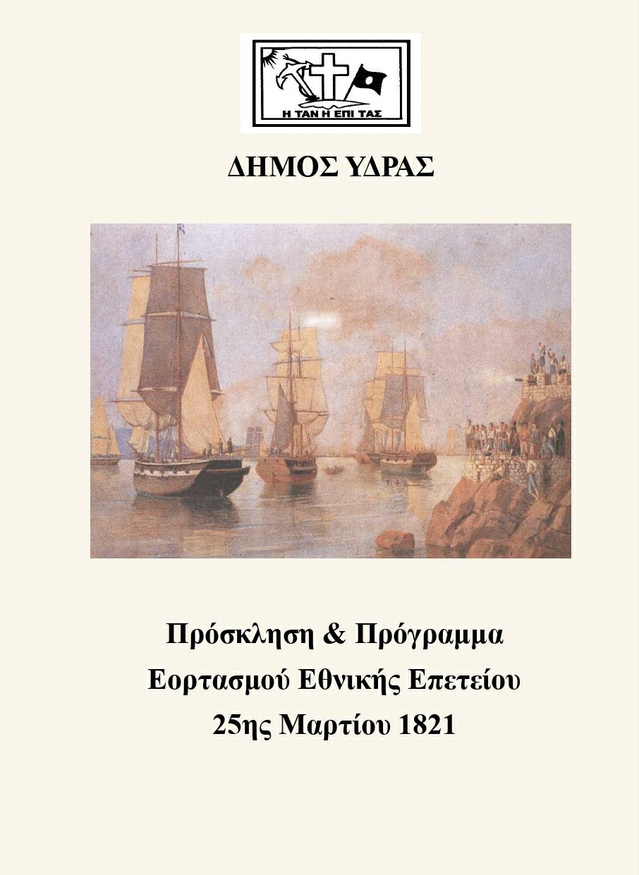 Στο πλαίσιο του εορτασμού της Εθνικής Επετείου της 25ης Μαρτίου θα πραγματοποιηθούν από τον Δήμο Ύδρας οι ακόλουθες εκδηλώσεις: