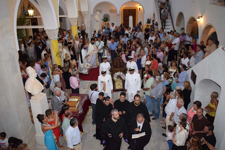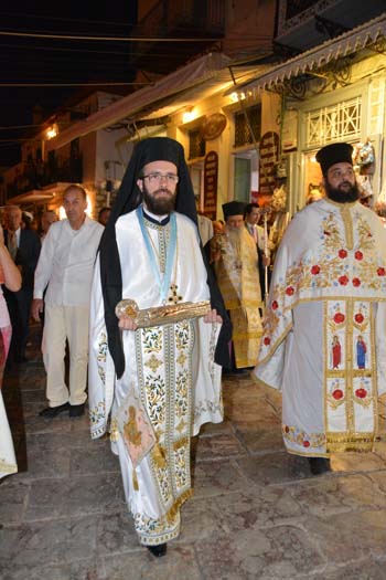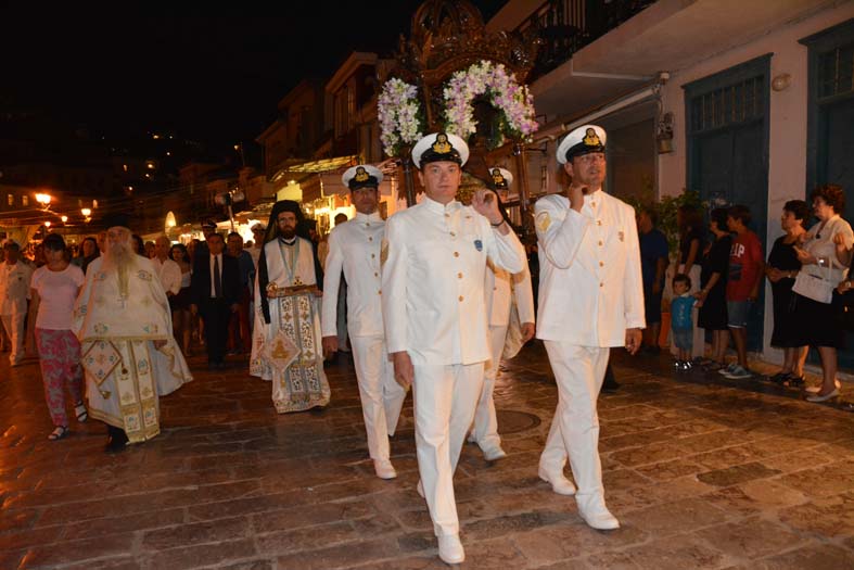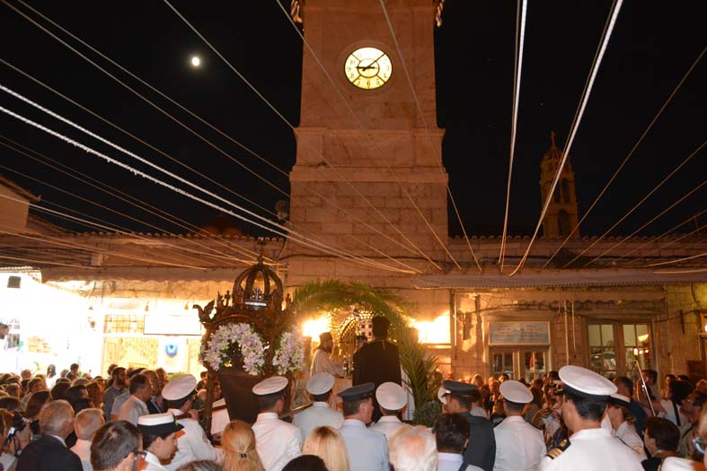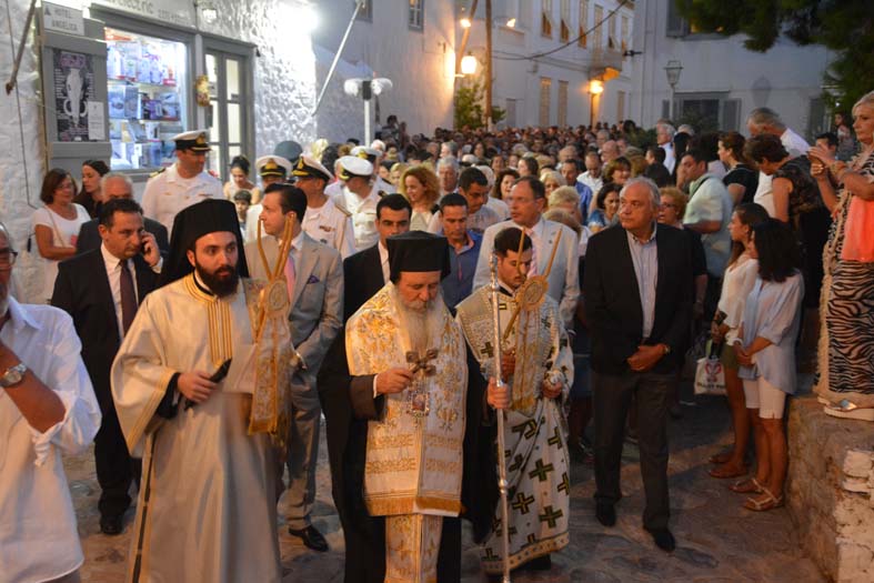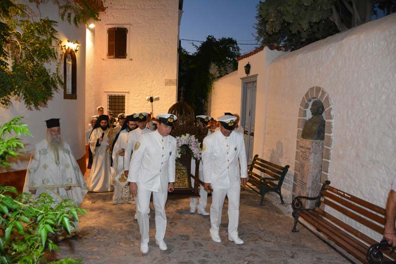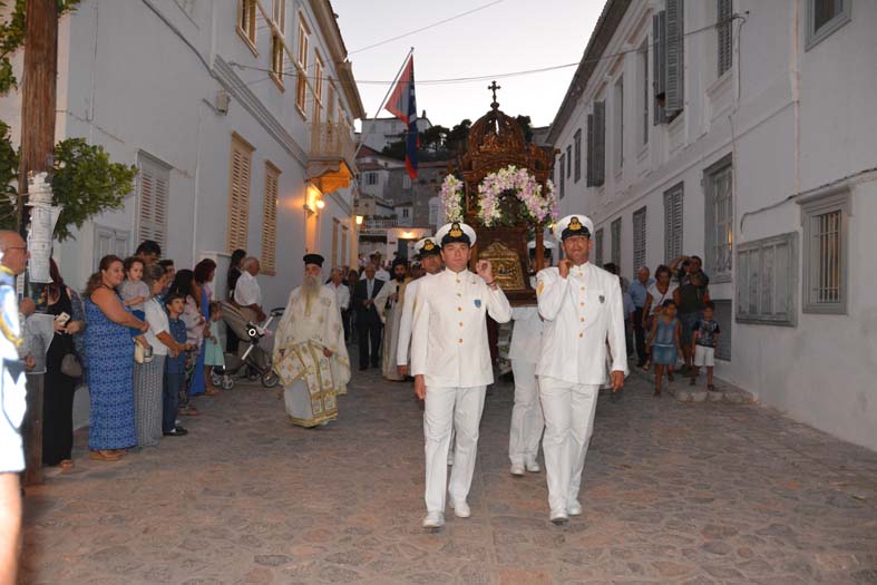 Ακολούθησε η καθιερωμένη λιτάνευση της Ιερής Εικόνας μέσα στα στενά της Ύδρας, σε μια σεπτή πομπή, που τη συνόδεψαν μαζί με τις αρχές του τόπου εκατοντάδες πιστοί, που διασχίζοντας τις γειτονιές είχαν την ευτυχία να συναντούν τους ιδιοκτήτες δεκάδων σπιτιών με κεράκια και φαναράκια αναμμένα κατά την περιφορά της εικόνας.