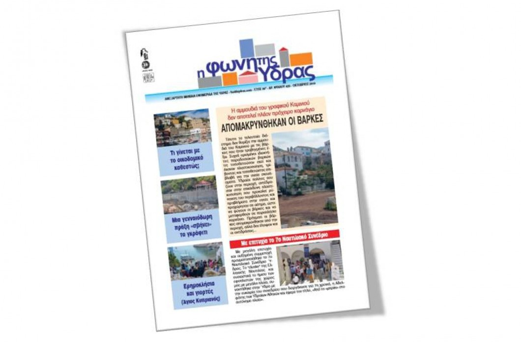 Κυκλοφόρησε το τεύχος Οκτωβρίου της «Φωνής της Ύδρας» (Α.φ. 420), με όλη την επικαιρότητα του νησιού, πλούσια ενημερωτική ύλη, άρθρα, σχολιασμούς και επισημάνσεις για τα καθημερινά ζητήματα, αντικειμενικά και εμπεριστατωμένα.