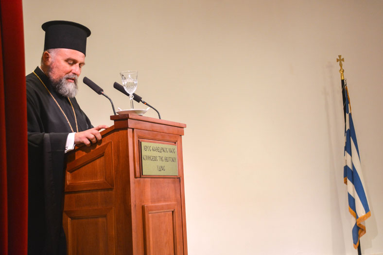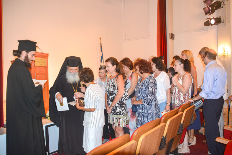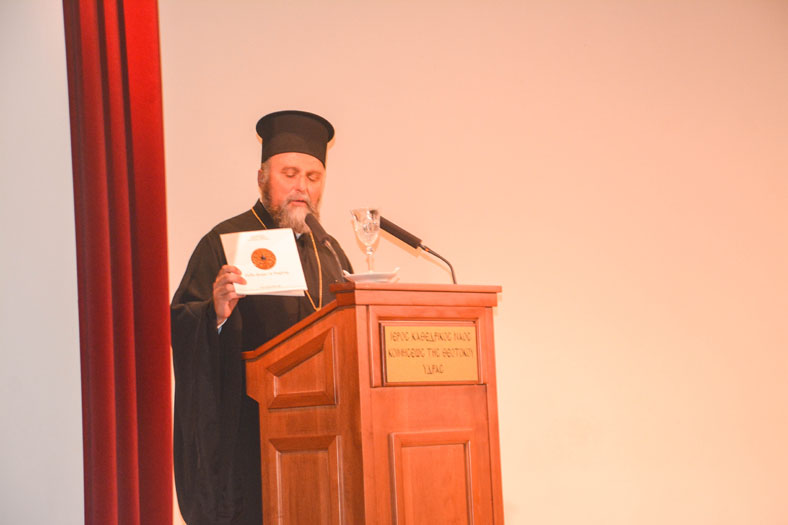 Μετά την ομιλία ακολούθησε η επίδοση τιμητικής πλακέτας των Θεομητορικών 2018 από τον Σεβασμιότατο Μητροπολίτη κ.κ. Εφραίμ στον ομιλητή Αρχιμ. της Μητρόπολης Αλεξανδρουπόλεως Πρωτ. Ειρηναίο Λαφτσή.