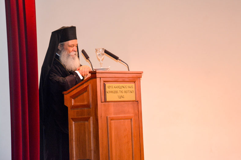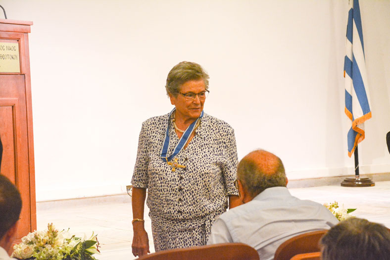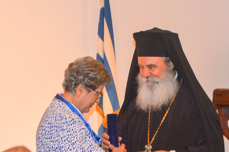 Ενώ μετά ο Γενικός Αρχιερατικός Επίτροπος πρ. Ακίνδυνος Δαρδανός σε σύντομη ομιλία του τόνισε ότι μετά από απόφαση του Επισκόπου κ. Εφραίμ θα δοθεί η τιμητική διάκριση με τον χρυσό Σταυρό του Ι. Καθεδρικού Ναού Ύδρας και περγαμηνή στην Μπήλιω Κοτομάτη, την οποία και ευχαρίστησε θερμά για την άριστη συνεργασία και εντιμότητά της. Ο Σεβασμιότατος επέδωσε στην κα Κοτομάτη την τιμητική διάκριση για την προσφορά, την άψογη συνεργασία και τις υπηρεσίες της στο Ενοριακό Φιλόπτωχο Ταμείο, τον Καθεδρικό Ναό και το Κουλούρειο Νοσοκομείο. Η κα Κοτομάτη απόλυτα συγκινημένη παρέλαβε τον χρυσό σταυρό και ευχαρίστησε με τη σειρά της, κρατώντας πάντα χαμηλούς τόνους.