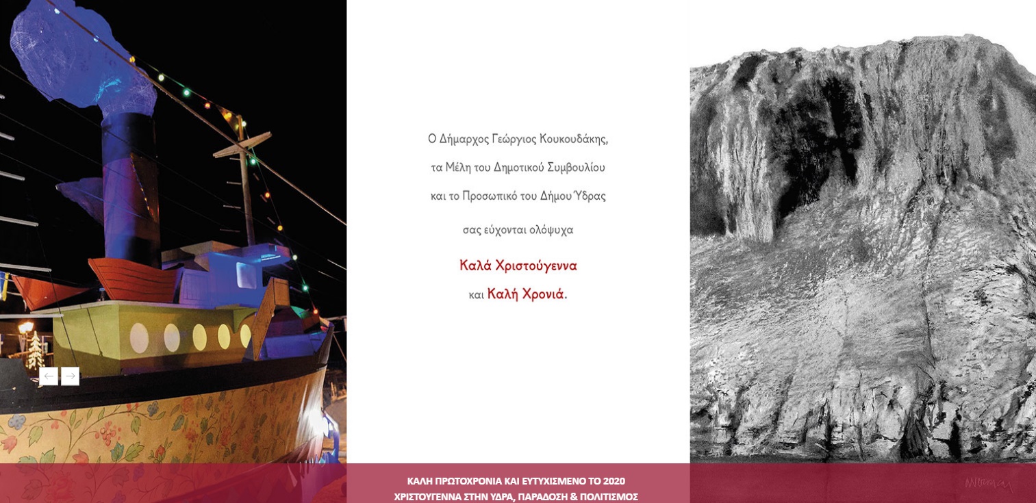 Για άλλη μια χρονιά ο Δήμος Ύδρας έφτιαξε και απέστειλε την ευχετήρια κάρτα του με τις χριστουγεννιάτικες και πρωτοχρονιάτικες ευχές, συνδυάζοντας φέτος την παράδοση και τον πολιτισμό!