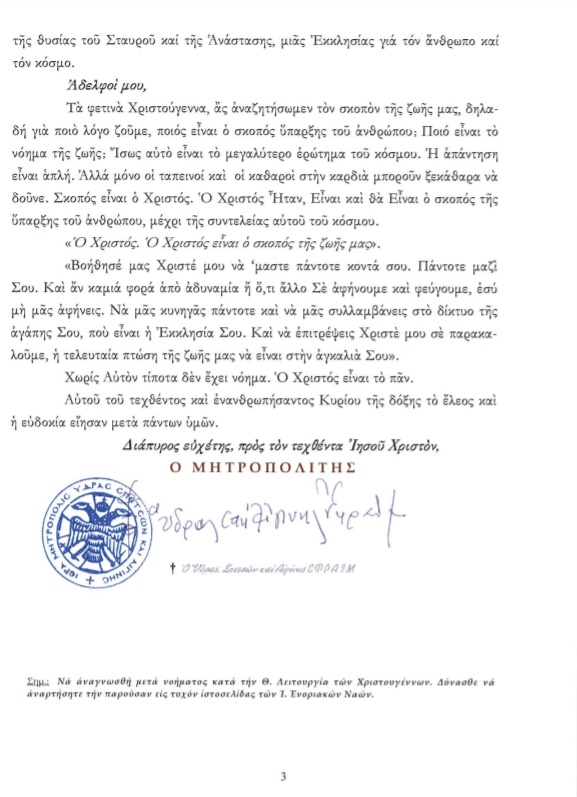 Η Ποιμαντορική Εγκύκλιος των Χριστουγέννων 2021 του Σεβ. Ποιμενάρχου, Μητροπολίτη Ύδρας, Σπετσών, Αιγίνης, Ερμιονίδας και Τροιζηνίας κ.κ. ΕΦΡΑΙΜ.