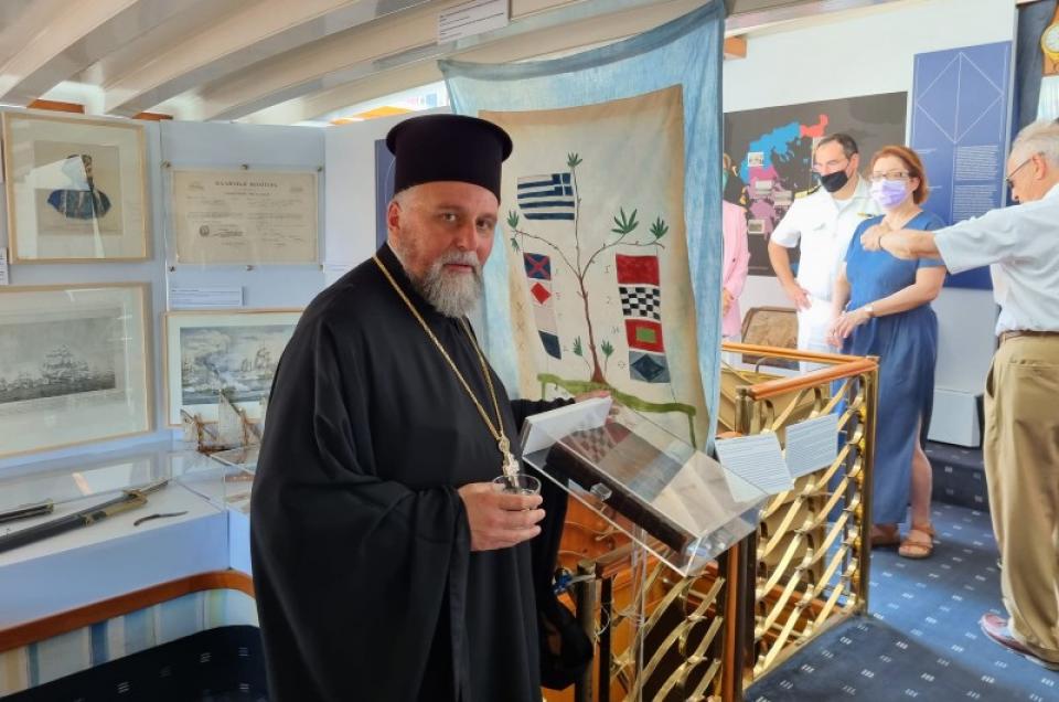 Στην υποδοχή, τον Σεβασμιώτατο Ποιμενάρχη μας κ. ΕΦΡΑΙΜ εκπροσώπησε ο Γενικός Αρχιερατικός Επίτροπος πρωτ. π. Ακίνδυνος Δαρδανός, ο οποίος μετέφερε τις πατρικές ευχές Του και ξεναγήθηκε στην εν λόγω πλωτή Έκθεση.