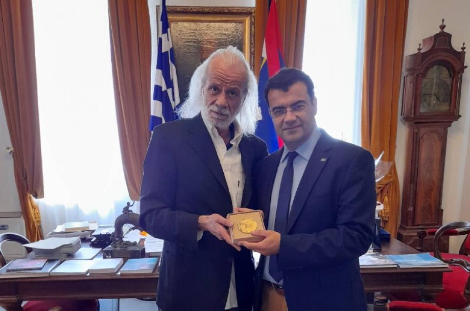 To Μετάλλιο του Δήμου Ύδρας επέδωσε ο Δήμαρχος Γιώργος Κουκουδάκης στον Αλέξανδρο Παπαδόπουλο για την διαχρονική προσφορά του στο Κοινωνικό Παντοπωλείο του νησιού μας.