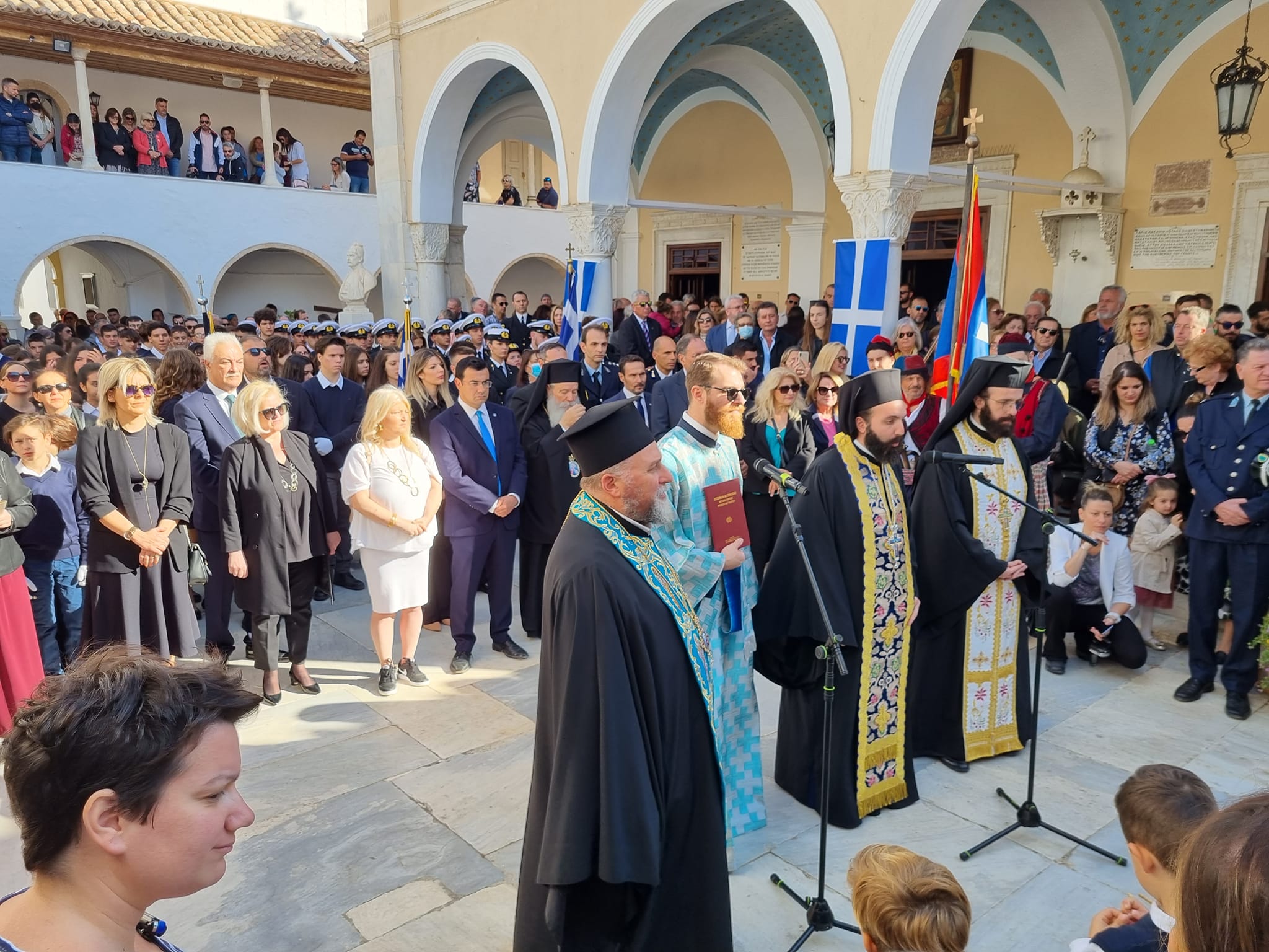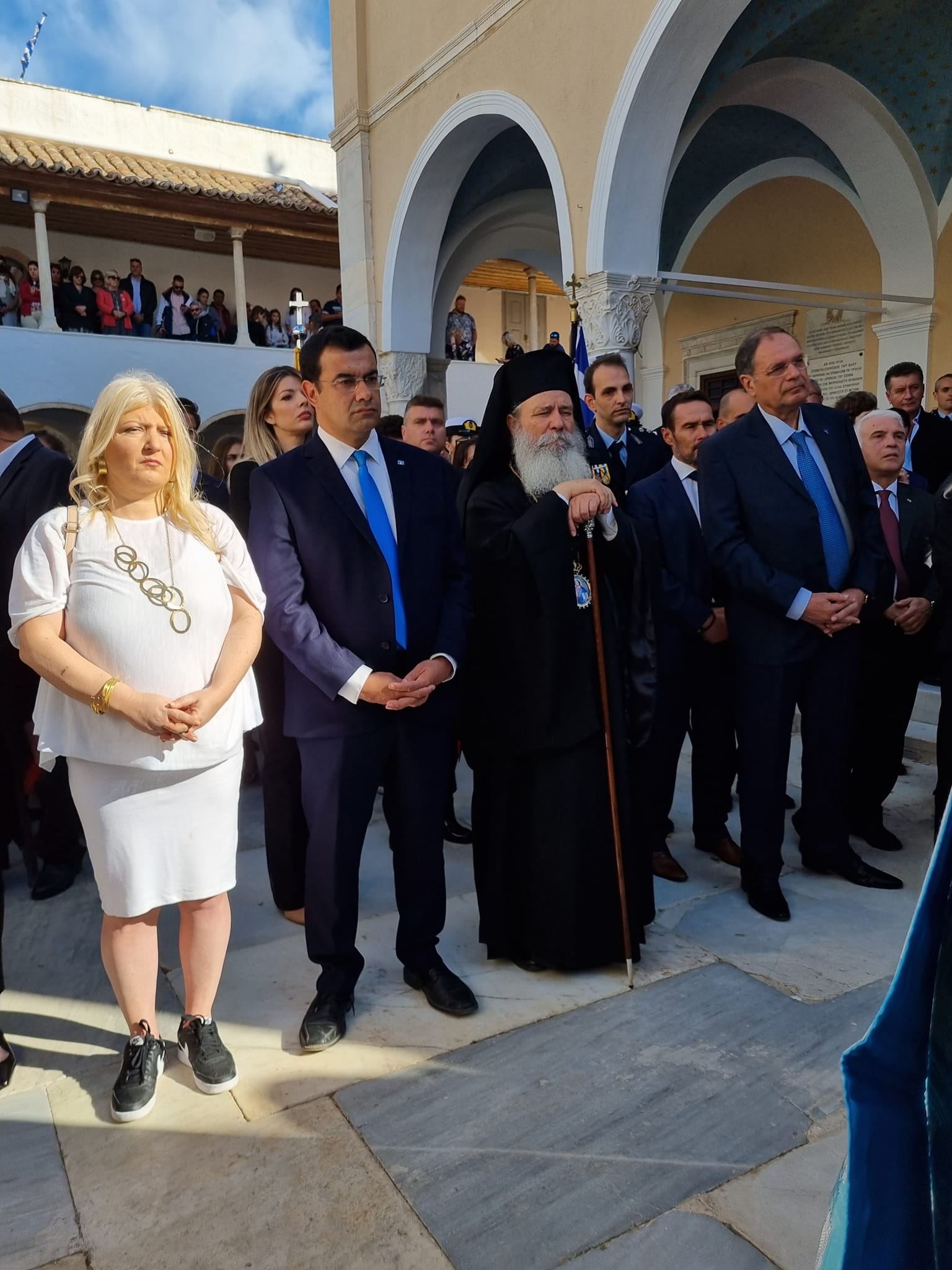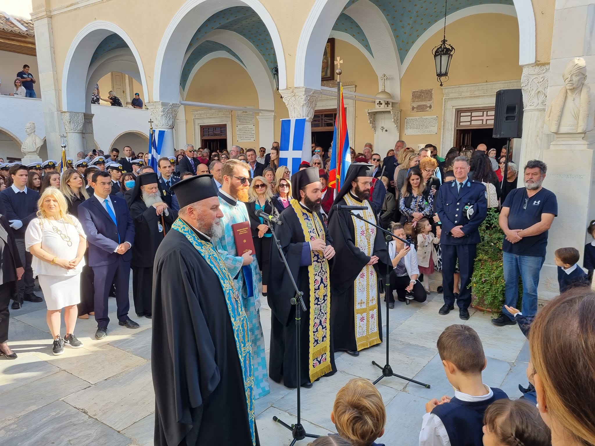 Εν συνεχεία ο Σεβασμιώτατος προέστη της Δοξολογίας επί τη Εθνική επετείω και ακολούθως παρέστη εις την επιμνημόσυνη δέηση εις το Ηρώον ως και εις τας εορτίους εκδηλώσεις της ημέρας.