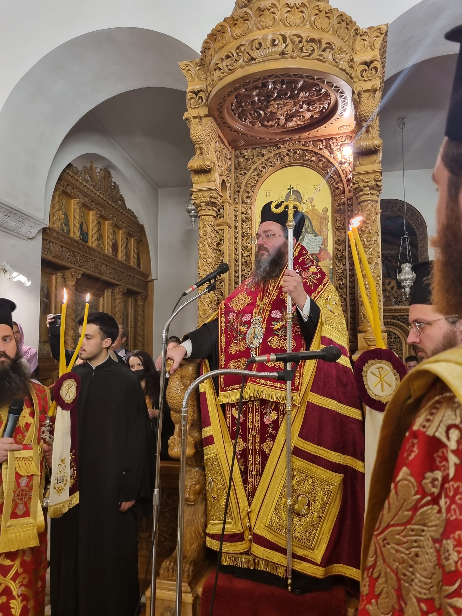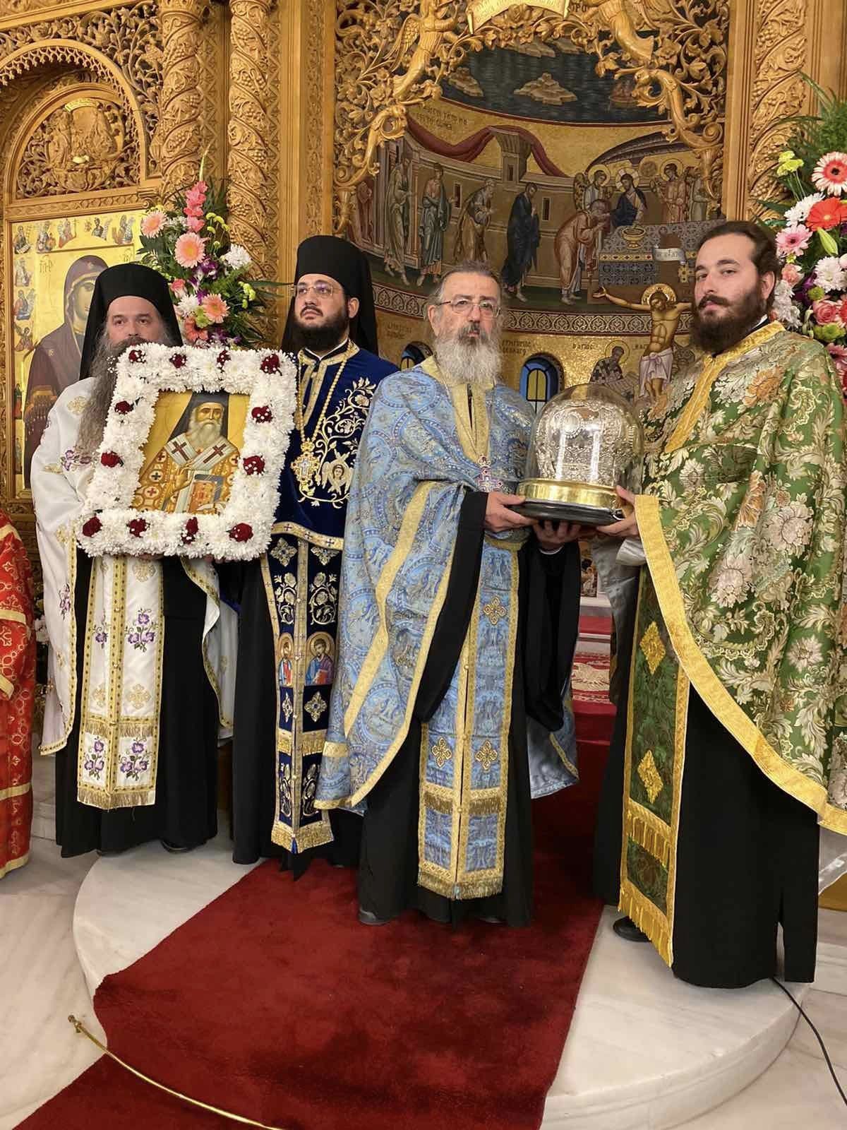 Συγχοροστάτησαν,ο Σεβασμιώτατος Μητροπολίτης Νέας Κρήνης και Καλαμαριάς κ.ΙΟΥΣΤΙΝΟΣ ,ο Σεβασμιώτατος Σταγών και Μετεώρων κ.ΘΕΟΚΛΗΤΟΣ,ο Σεβασμιώτατος Λαγκαδά, Λητής και Ρεντίνης ο κ.ΠΛΑΤΩΝ,και ο Σεβασμιώτατος Ποιμενάρχης μας κ.ΕΦΡΑΙΜ.