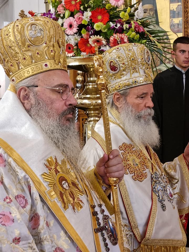 Συλλειτούργησαν οι Σεβασμιώτατοι Μητροπολίτες: Σταγών και Μετεώρων κ. ΘΕΟΚΛΗΤΟΣ, Λαγκαδά, Λητής και Ρεντίνης κ. ΠΛΑΤΩΝ, Πολυανής και Κιλκισίου κ. ΒΑΡΘΟΛΟΜΑΙΟΣ, και ο Σεβασμιώτατος Ποιμενάρχης μας κ.ΕΦΡΑΙΜ.