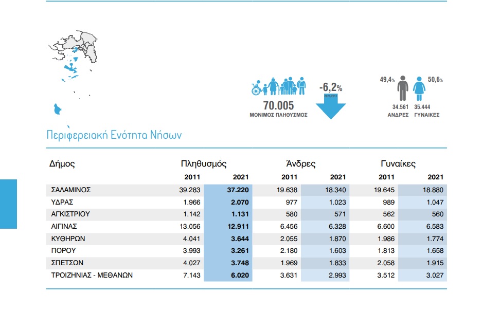 Δημοσιεύτηκαν από την ΕΛΣΤΑΤ τα επίσημα αποτελέσματα της Απογραφής του Νόμιμου και του Μόνιμου πληθυσμού για το 2021.