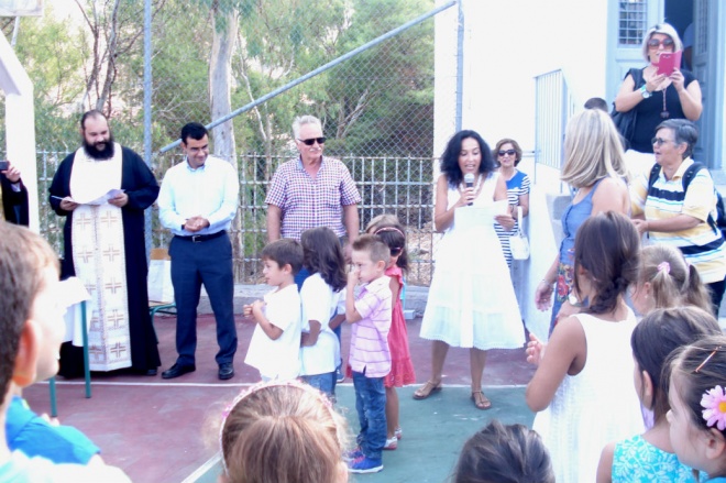 Ημέρα αγιασμού σήμερα για όλα τα δημοτικά, γυμνάσια, λύκεια της χώρας και στα σχολεία του νησιού μας η πρώτη μέρα κύλησε ευχάριστα για όλους. Χαρούμενα παιδικά πρόσωπα, χαμόγελα, πειράγματα και το προαύλιο γέμισε από παιδιά και γονείς που όλοι μαζί έκαναν το ξεκίνημα της νέας σχολικής χρονιάς. Ο Γ.Α.Ε Πρωτ. π. Ακίνδυνος και ο π. Γεώργιος τέλεσαν τον αγιασμό στο Α΄ Δημοτικό Σχολείο, όπου εκεί παραβρέθηκε και ο Δήμαρχος Ύδρας, Γιώργος Κουκουδάκης με τον Πρόεδρο του Δημοτικού Συμβουλίου Αριστοτέλη Καλύβα. Ο Δήμαρχος αφού ευχήθηκε στα παιδιά Καλή Χρονιά, τους ενημέρωσε για την εκδήλωση Kid’s Athletics, η οποία με πρωτοβουλία του Δήμου μας, σύντομα θα λάβει χώρα στην Ύδρα και θα μπορούν να συμμετάσχουν όλα τα παιδιά του νησιού. Η Διευθύντρια του Α΄ Δημοτικού, Ματίνα Ρούσση ευχαρίστησε θερμά τον Δήμαρχο για όλες τις ενέργειες που έχει κάνει ο ίδιος, ώστε να ξεπεραστούν εμπόδια και να διασφαλιστεί η εύρυθμη λειτουργία του σχολείου.
