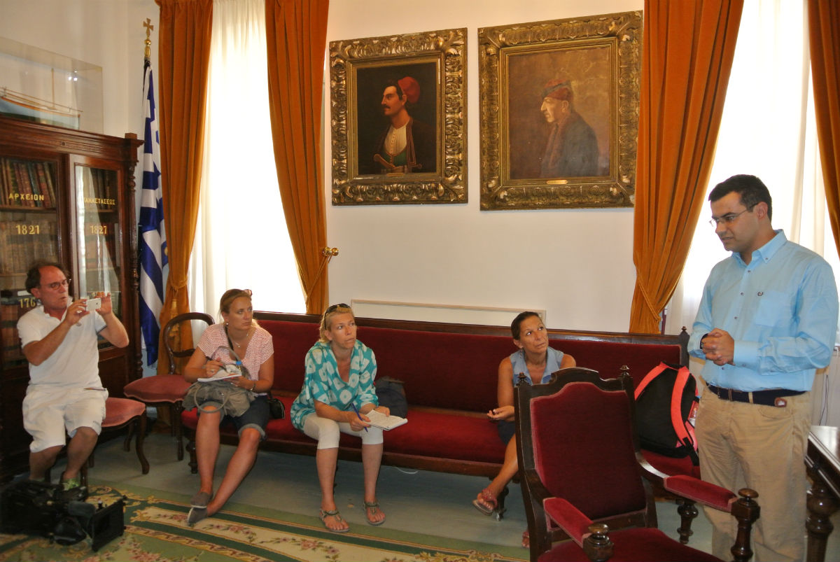 Κατά την επίσκεψη στην Ύδρα, καλωσόρισε τους δημοσιογράφους στο Δημαρχείο, ο Δήμαρχος Ύδρας, Γιώργος Κουκουδάκης, ο οποίος μίλησε στα αγγλικά για την ιστορία του νησιού μας, τον σπουδαίο ρόλο του κατά τον αγώνα της επανάστασης του 1821, τη ζωή στο νησί, τους ανθρώπους, τις εκδηλώσεις, αλλά και την σημερινή αίγλη που έχει ως κοσμοπολίτικος προορισμός.