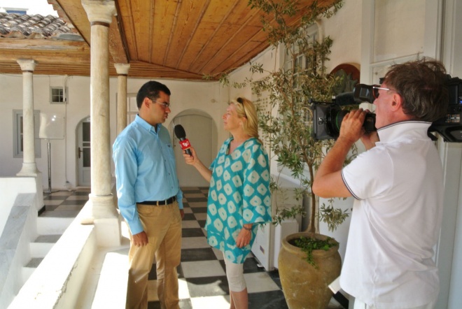 Ο κ. Κουκουδάκης μιλώντας αργότερα στην δημοσιογράφο του ιταλικού καναλιού TG2-RΑΙ2, Silvia Vacarezza, εστίασε το ενδιαφέρον του στην αρχιτεκτονική μοναδικότητα του νησιού μας, καθώς και τη διαφύλαξη και διατήρησή του μέχρι τις μέρες μας. Ενώ επίσης, ερωτώμενος, αναφέρθηκε και στο παρελθόν, όταν η Σοφία Λώρεν και «Το παιδί και το δελφίνι» έκανε την Ύδρα να μεσουρανεί στο παγκόσμιο κινηματογραφικό στερέωμα.