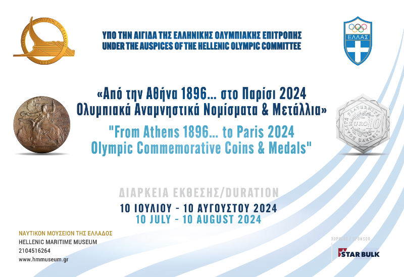 Το Ναυτικό Μουσείο της Ελλάδος με την ευκαιρία της διεξαγωγής των 33ων Ολυμπιακών Αγώνων στο Παρίσι παρουσιάζει την έκθεση «Από την Αθήνα 1896… στο Παρίσι 2024. Ολυμπιακά Αναμνηστικά Νομίσματα & Μετάλλια», η οποία τελεί υπό την αιγίδα της Ελληνικής Ολυμπιακής Επιτροπής. Τα εγκαίνια της έκθεσης θα τελέσει ο εκπρόσωπος του Πρωθυπουργού, Υφυπουργός Ναυτιλίας και Νησιωτικής Πολιτικής κ. Στέφανος Γκίκας την Τετάρτη 10 Ιουλίου 2024 και ώρα 20:30 στο Ναυτικό Μουσείο της Ελλάδος.
