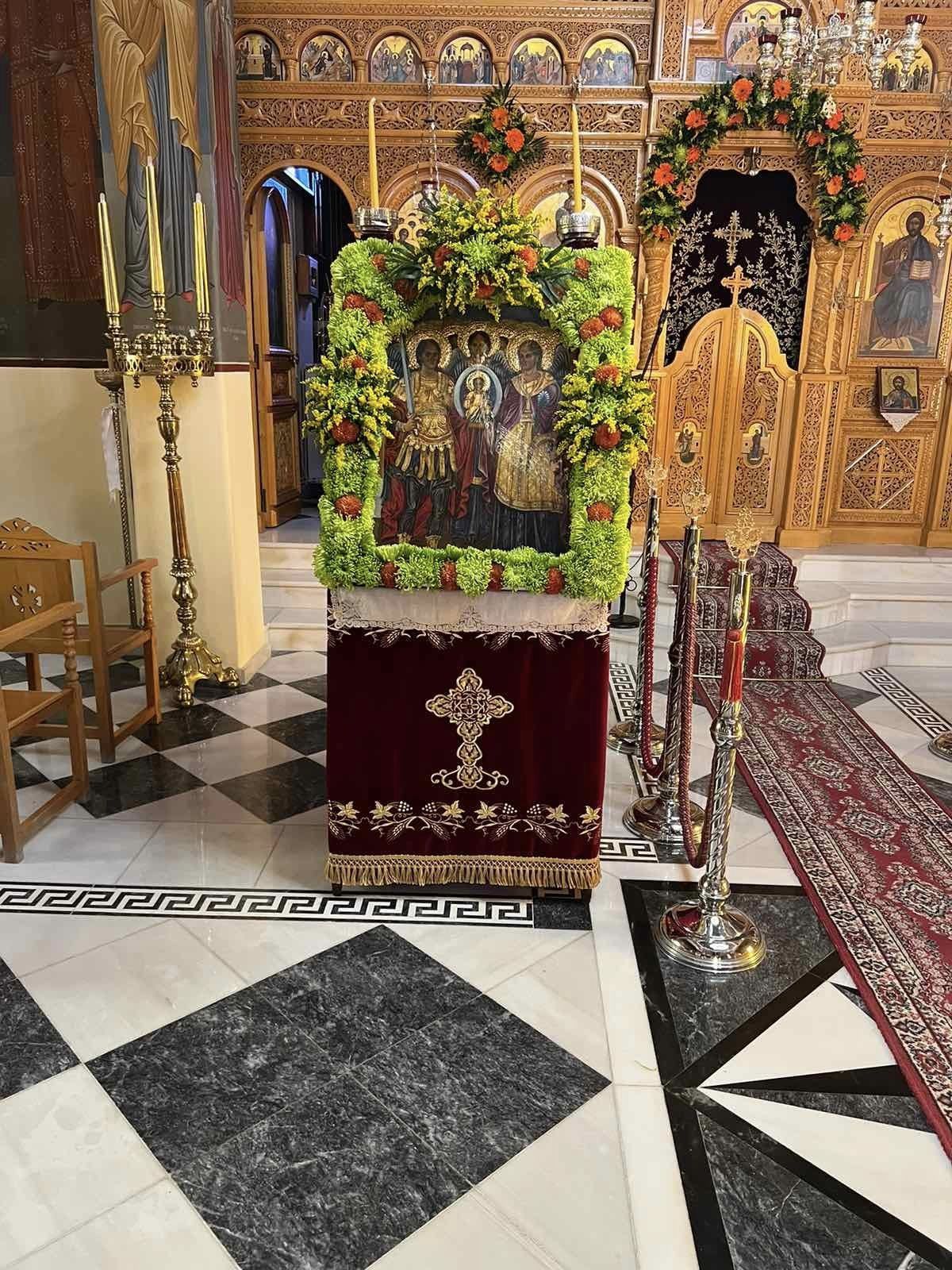 Ακολούθησε λιτάνευση της Ιεράς Εικόνος των Ταξιαρχών και εόρτιο κέρασμα.