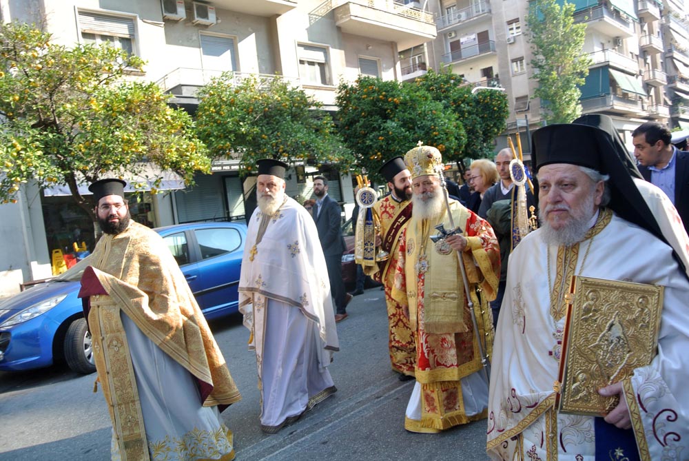 Ακολούθησε λιτάνευση της ιερής εικόνας στις παρακείμενες οδούς του Ναού, με προπορευόμενη την μπάντα του Δήμου Πειραιά και την αντιπροσωπεία Υδραίων μπουρλοτιέρηδων που κρατούσαν την εικόνα και τη σημαία της Ύδρας.