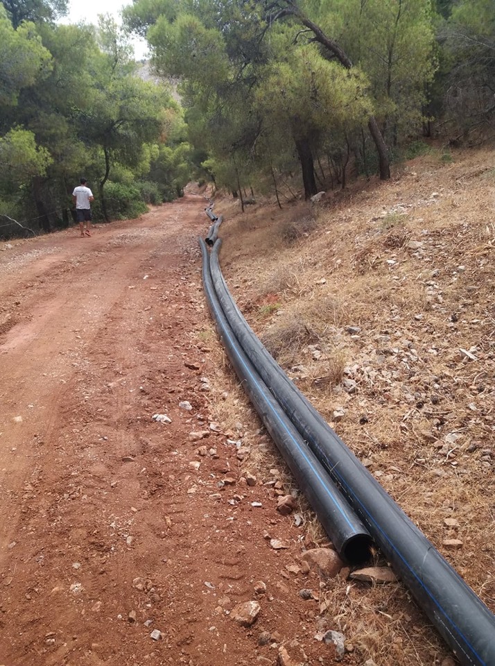 - Καταθλιπτικού αγωγού μεταφοράς από τη γεώτρηση Γ1 στη δεξαμενή εξισορρόπησης ύδατος ΔΕΞ