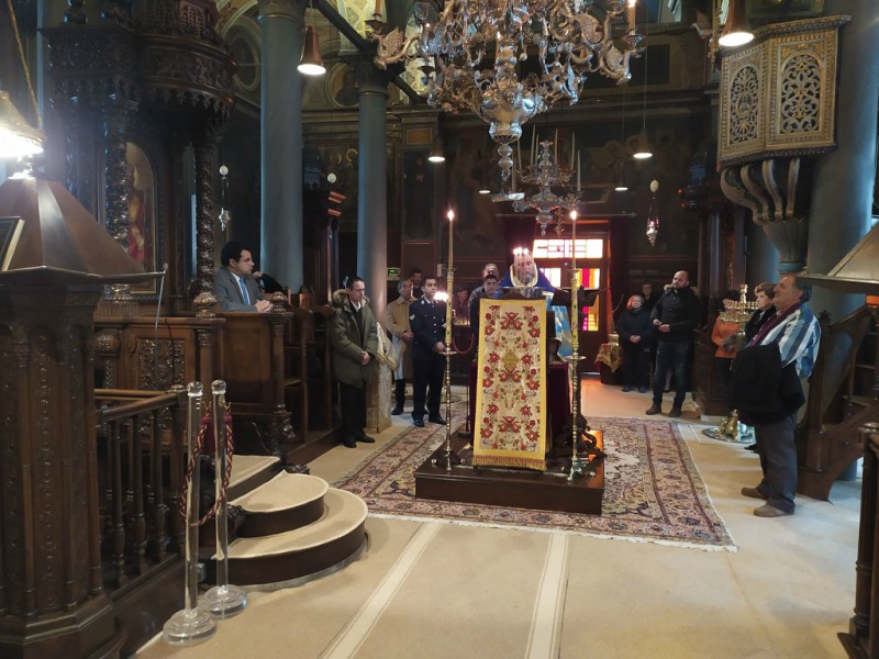 Στον Ι. Καθεδρικό Ναό Κοιμήσεως Θεοτόκου τελέστηκε το πρωί θεία λειτουργία από τον Γενικό Αρχιερατικό Επίτροπο της Μητρόπολης, Πρωτ. Ακίνδυνο Δαρδανό.