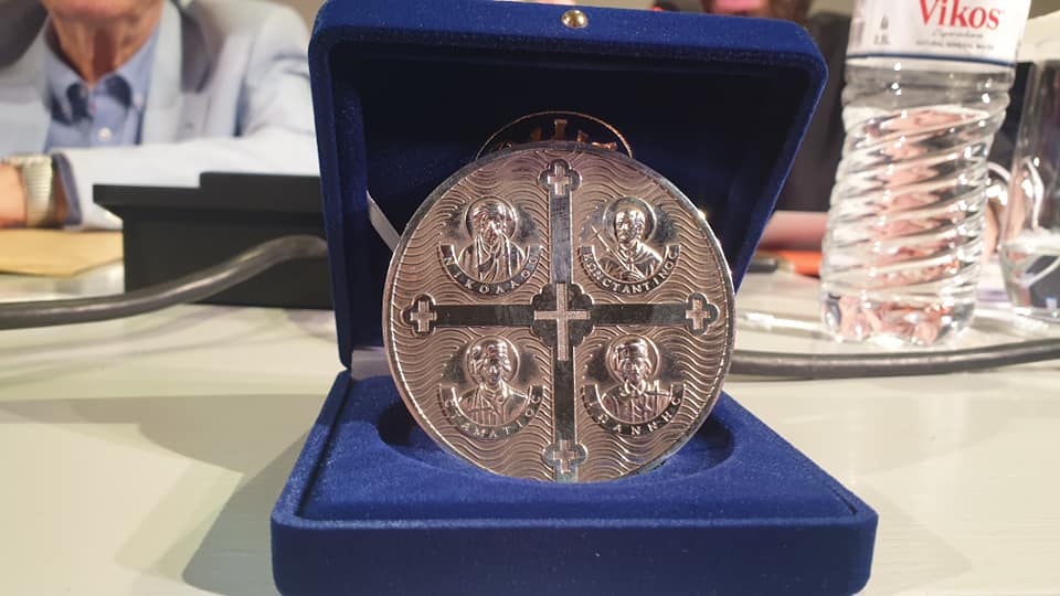 Στο τέλος ο Πανοσ. Πρωτοσύγκελλος παρουσίασε το Επετειακό Μετάλλιο που εξέδωκε η Ι. Μητρόπολη μας.