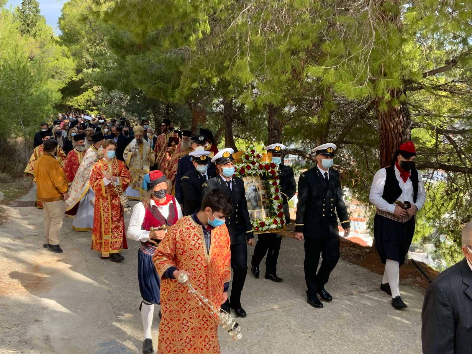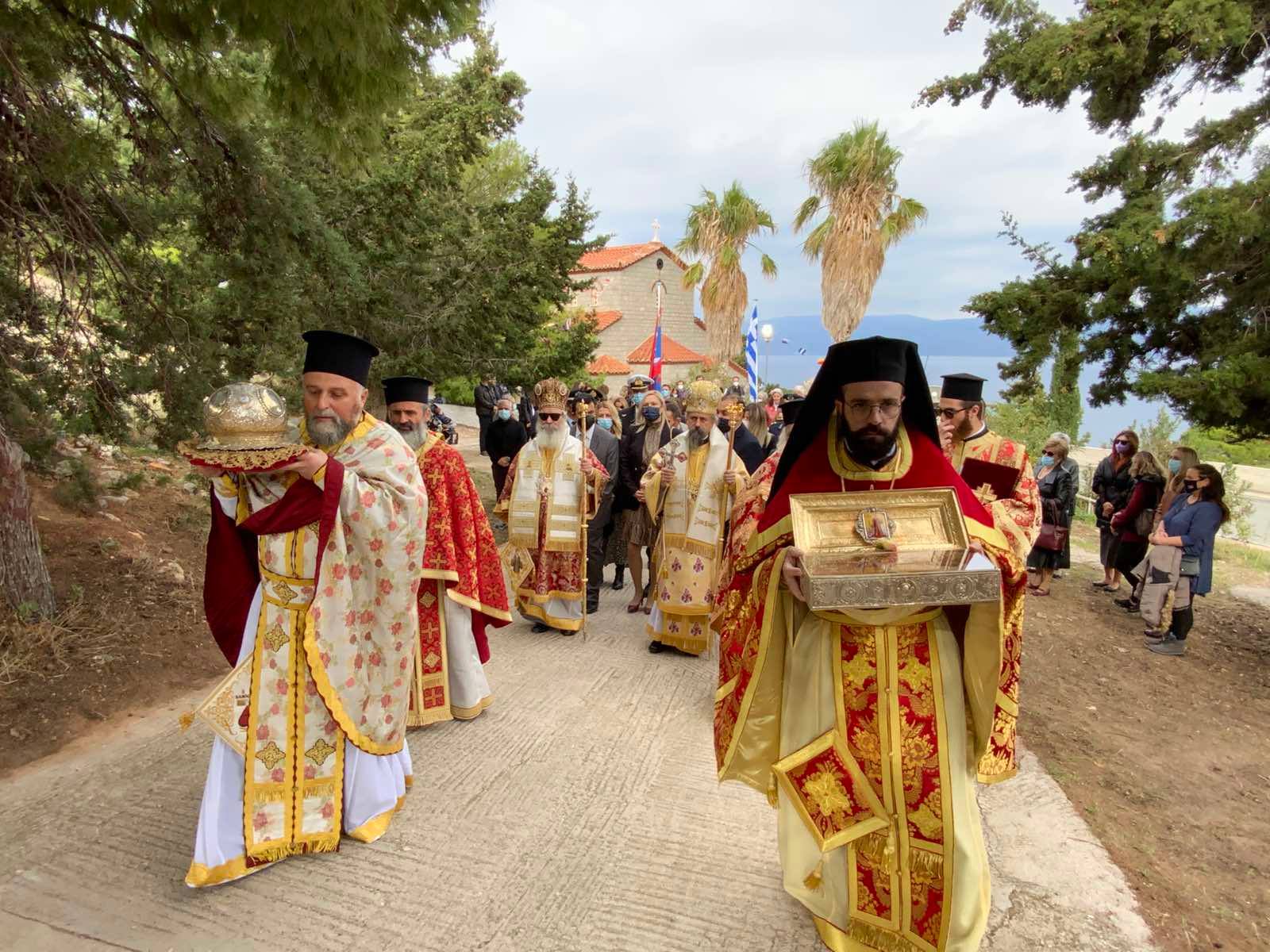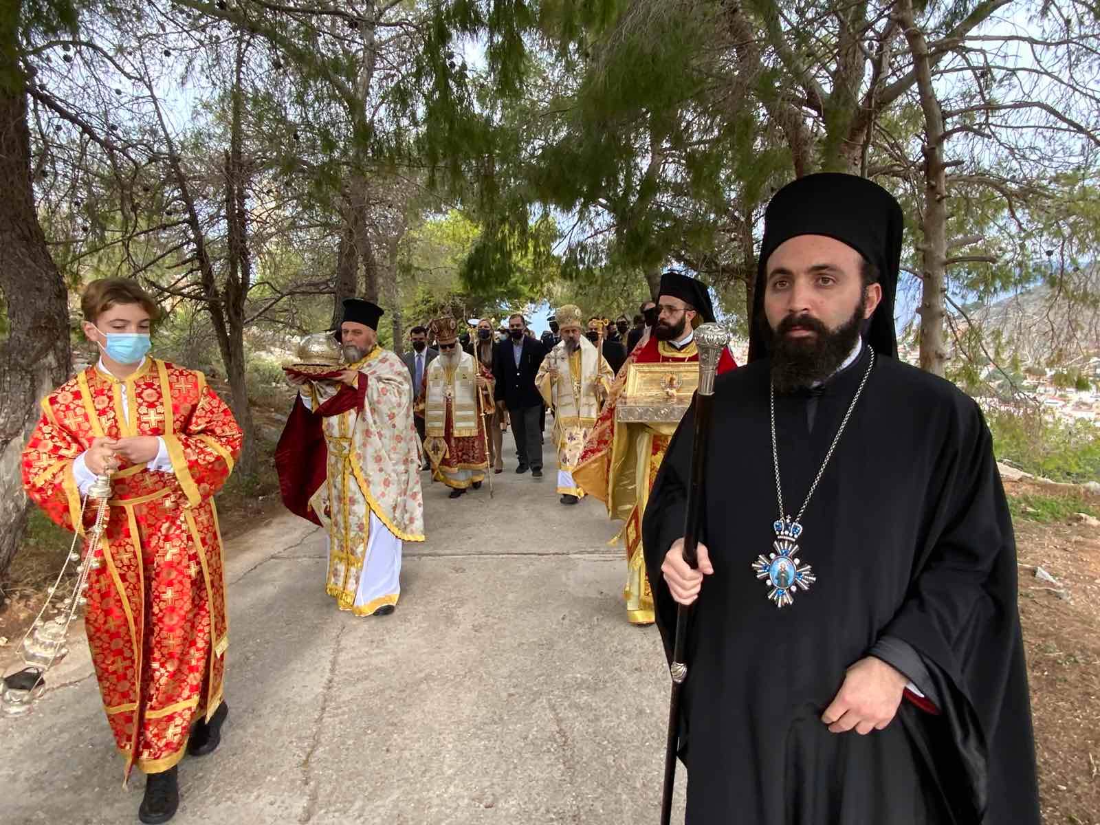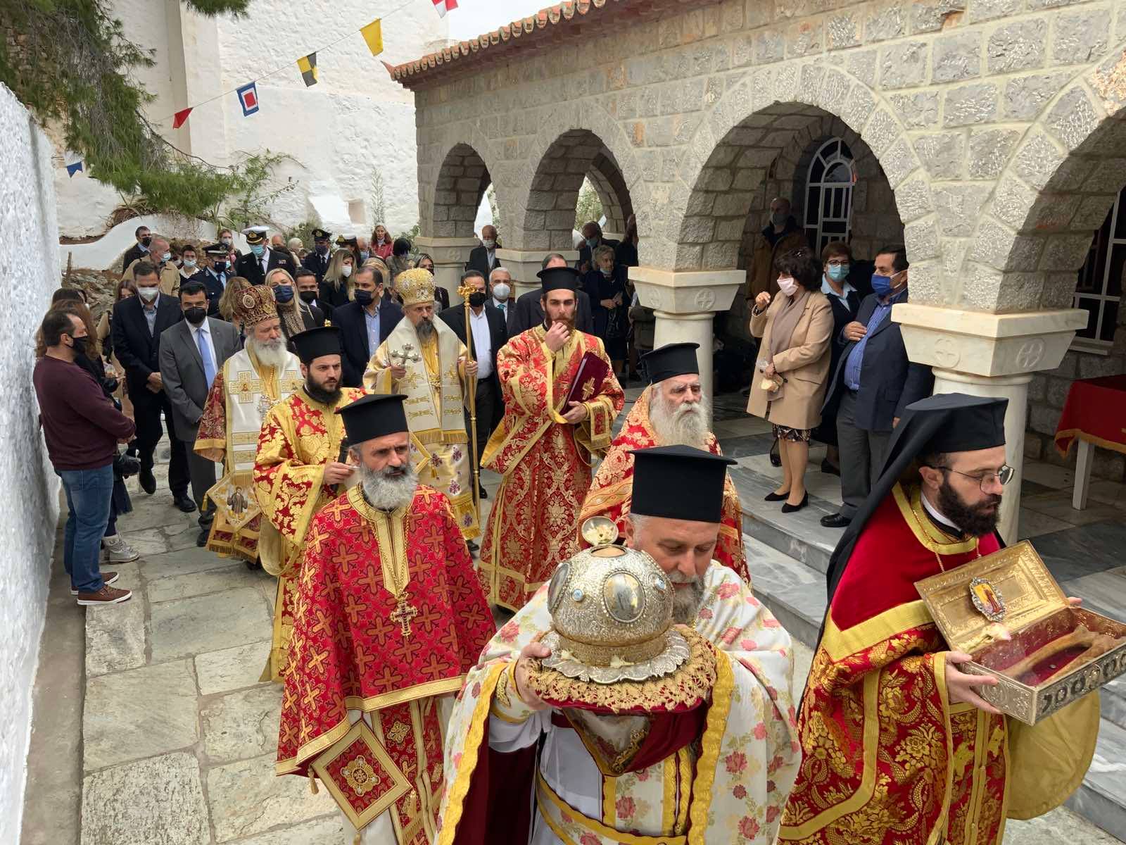 Επί της εξέδρας ο Σεβασμιώτατος Ποιμενάρχης μας κ. ΕΦΡΑΙΜ ευχαρίστησε τις αρχές κυρίως δε τα παιδιά των Σχολείων της Ύδρας εις τα οποία μίλησε πατρικά.