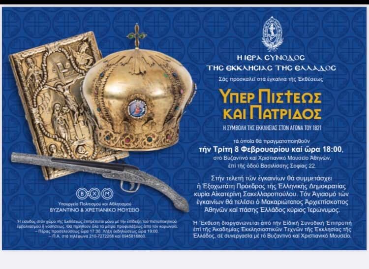 Ο Σεβασμιώτατος Ποιμενάρχης ημών κ.κ ΕΦΡΑΙΜ συνοδευόμενος υπό του Πανοσ. Πρωτοσυγκέλλου Αρχιμ. π. Νεκταρίου Δαρδανού, το εσπέρας της 8ης Φεβρουαρίου 2022 παρέστη εις τα εγκαίνια της έκθεσης "ΥΠΕΡ ΠΙΣΤΕΩΣ ΚΑΙ ΠΑΤΡΙΔΟΣ" - Η ΣΥΜΒΟΛΗ ΤΗΣ ΕΚΚΛΗΣΙΑΣ ΣΤΟΝ ΑΓΩΝΑ ΤΟΥ 1821, στο Βυζαντινό και Χριστιανικό Μουσείο Αθηνών.