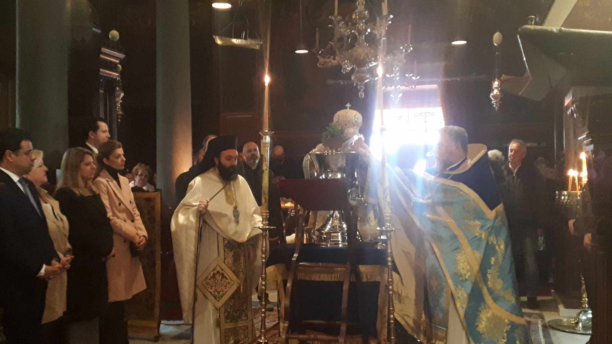 Στον Ι. Καθεδρικό Ναό Κοιμήσεως Θεοτόκου τελέστηκε το πρωί η θεία λειτουργία και ο Μ. Αγιασμός και ακολούθησε η λιτανευτική πομπή προς τα Καλά Πηγάδια, με τον καθιερωμένο αγιασμό.