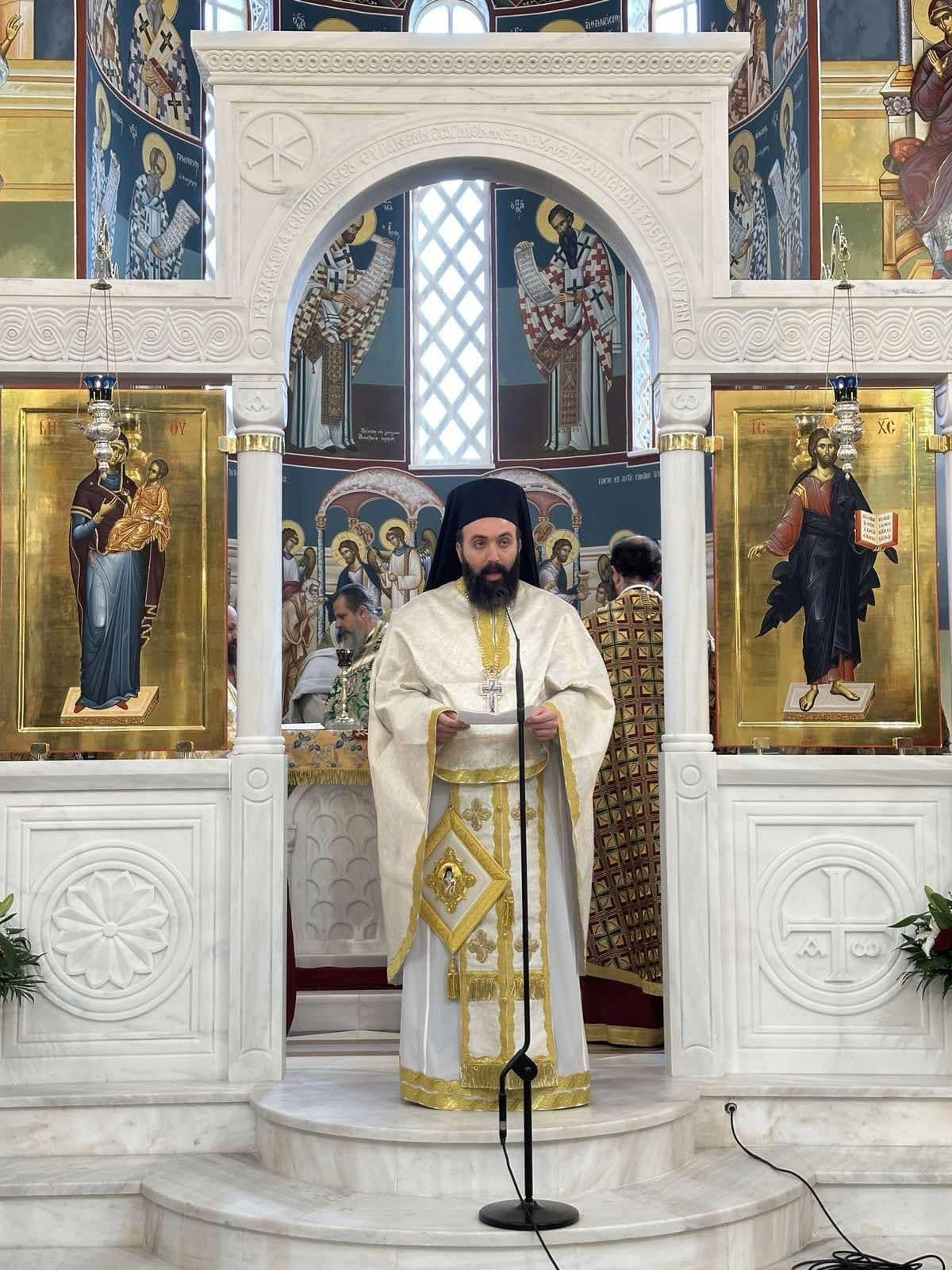 Τον Θ. Λόγο εκήρυξε ο Πανοσιολ. Πρωτοσύγκελλος Αρχιμ. π. Νεκτάριος Δαρδανός κάνοντας αναφορά στο συναξάρι του Οσίου Εφραίμ και στο τεράστιο έργο της 24χρονης Ποιμαντορίας του Σεβασμιωτάτου και εν κατακλείδι μετέφερε προς τον Ποιμενάρχη μας τις ολόθερμες ευχές του Ιερού κλήρου της Ι Μητροπόλεως.
