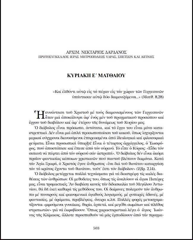 Άρθρο του Πανοσιολ. Αρχιμ. π. Νεκταρίου Δαρδανού, Πρωτοσυγκέλλου της Ιεράς Μητροπόλεως Ύδρας, Σπετσών και Αιγίνης, στην εξαμηνιαία επιστημονική περιοδική έκδοση «ΑΧΙΛΛΙΟΥ ΠΟΛΙΣ» της Ιεράς Μητροπόλεως Λαρίσης & Τυρνάβου.