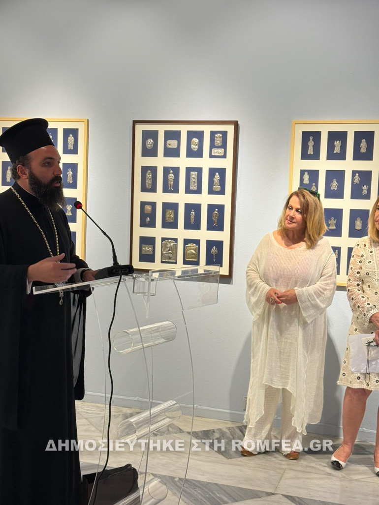Τον Σεβασμιώτατο Μητροπολίτη εκπροσώπησε ο Πρωτοσύγκελλος της Ιεράς Μητροπόλεως Αρχιμ. Νεκτάριος Δαρδανός, ο οποίος μίλησε σχετικά, αναφέρθηκε στην έννοια του τάματος, ευχαρίστησε τους συντελεστές και την κ. Λόλα Νταϊφά για το έργο της και την συμβολή της στον χώρο του πολιτισμού και της τέχνης.