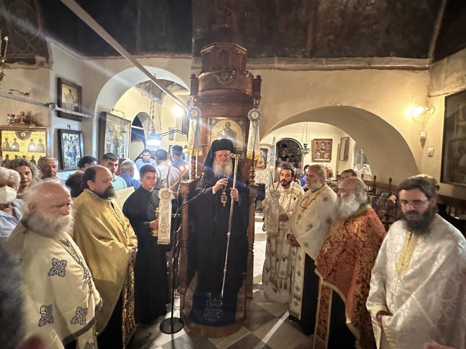 Με λαμπρότητα τελέστηκε το εσπέρας της 30ης Ιουνίου 2024, εις την εορτάζουσα Ι. Μονή των Αγίων Αναργύρων Ερμιόνης ο Μ.Αρχιερατικός Εσπερινός χοροστατούντος του Σεβασμιωτάτου Ποιμενάρχου μας κ.ΕΦΡΑΙΜ.
